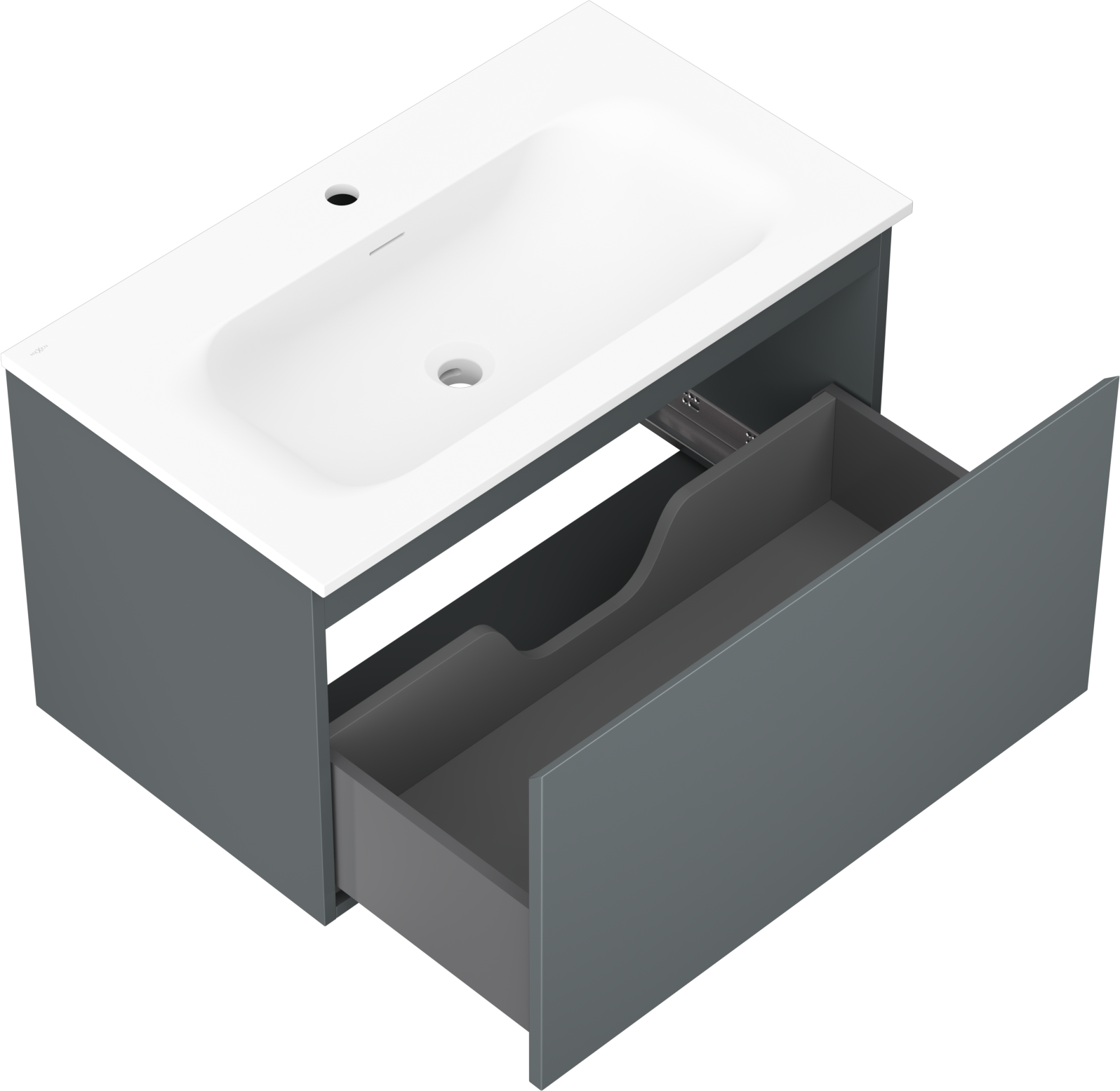Изрезът в чекмеджето е проектиран по такъв начин, че да побере сифона, който е необходим в мивковите инсталации. Благодарение на това мебелът може да бъде монтиран напълно функционално, без да се налага отказване от пространството в чекмеджето заради инсталацията.
