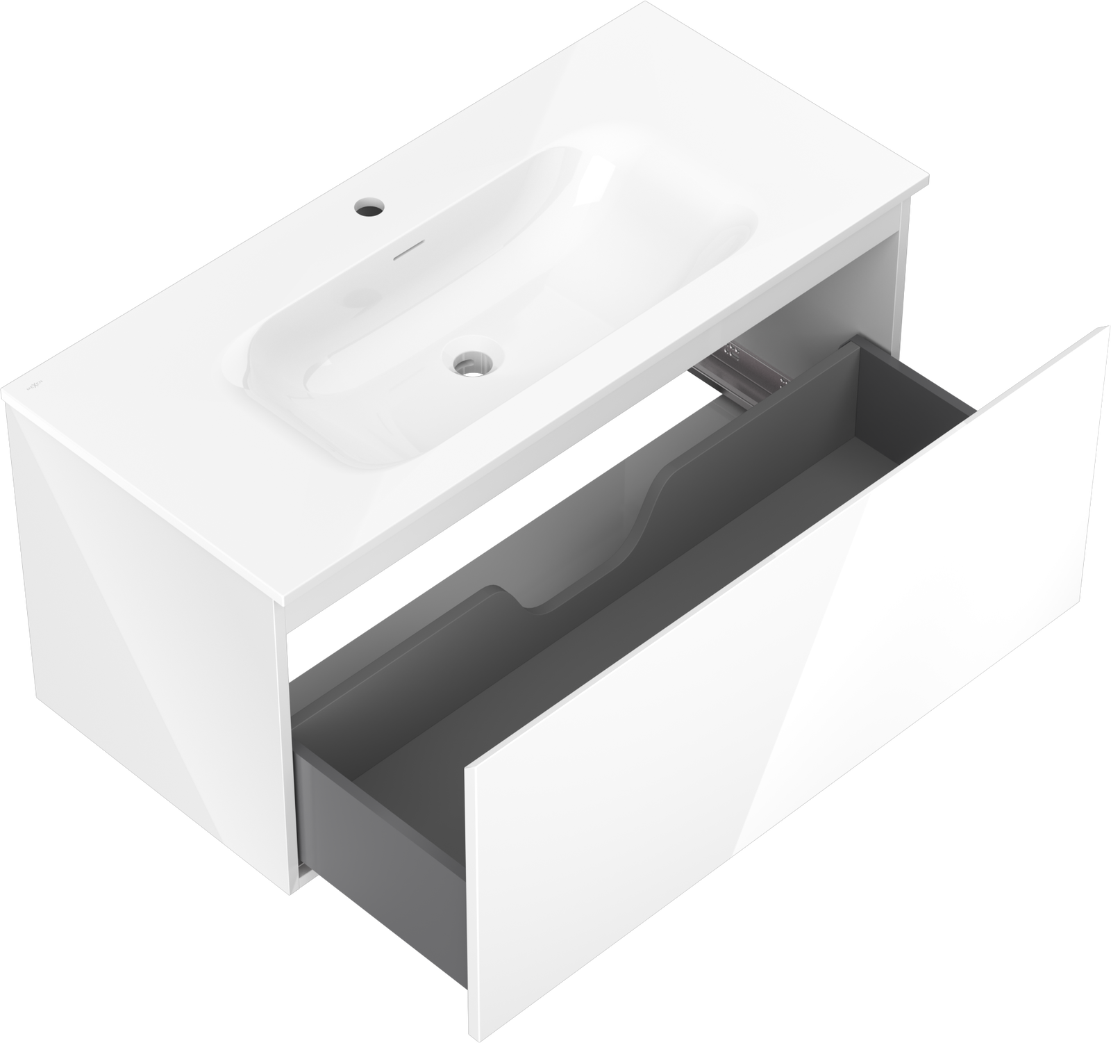 Изрезът в чекмеджето е проектиран по такъв начин, че да побере сифона, който е необходим в мивковите инсталации. Благодарение на това мебелът може да бъде монтиран напълно функционално, без да се налага отказване от пространството в чекмеджето заради инсталацията.