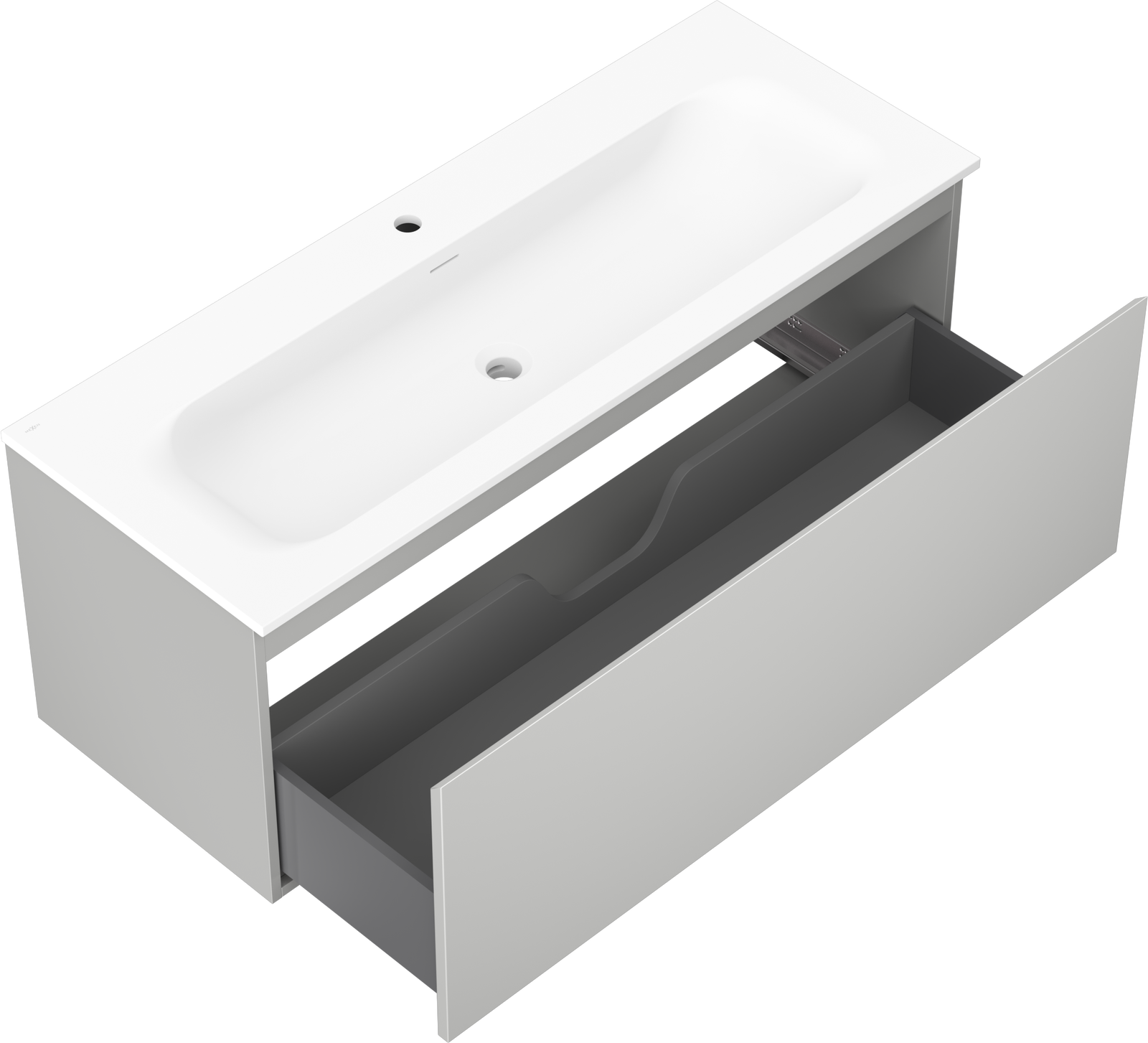Изрезът в чекмеджето е проектиран по такъв начин, че да побере сифона, който е необходим в мивковите инсталации. Благодарение на това мебелът може да бъде монтиран напълно функционално, без да се налага отказване от пространството в чекмеджето заради инсталацията.