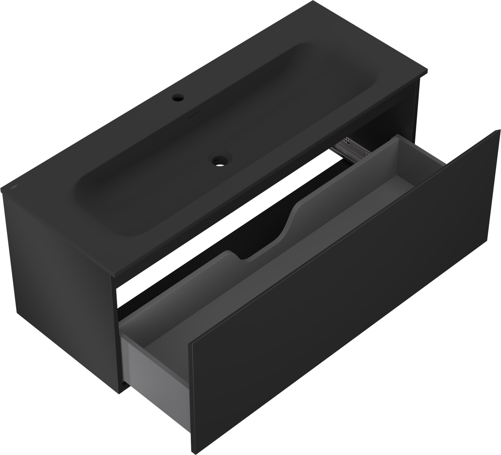 Изрезът в чекмеджето е предназначен за поставяне на сифона, който е от съществено значение за инсталациите на умивалника. Това позволява на мебелта да се монтира по напълно функционален начин, без да се налага да се отделя място в чекмеджето за инсталацията.