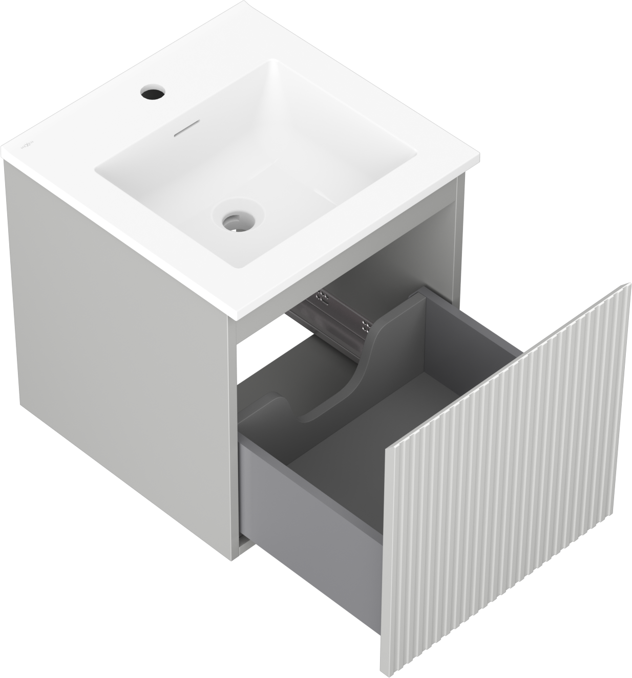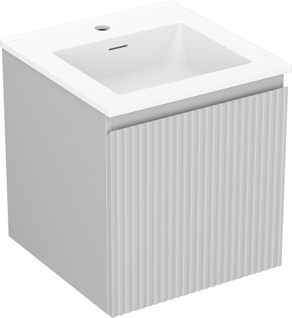 Mexen Rivel банална шкаф 45 см с мивка Otis, 1 чекмедже, гофрирана, сива мат/бяла мат - 91A20-04547-1-BF62-W18M01