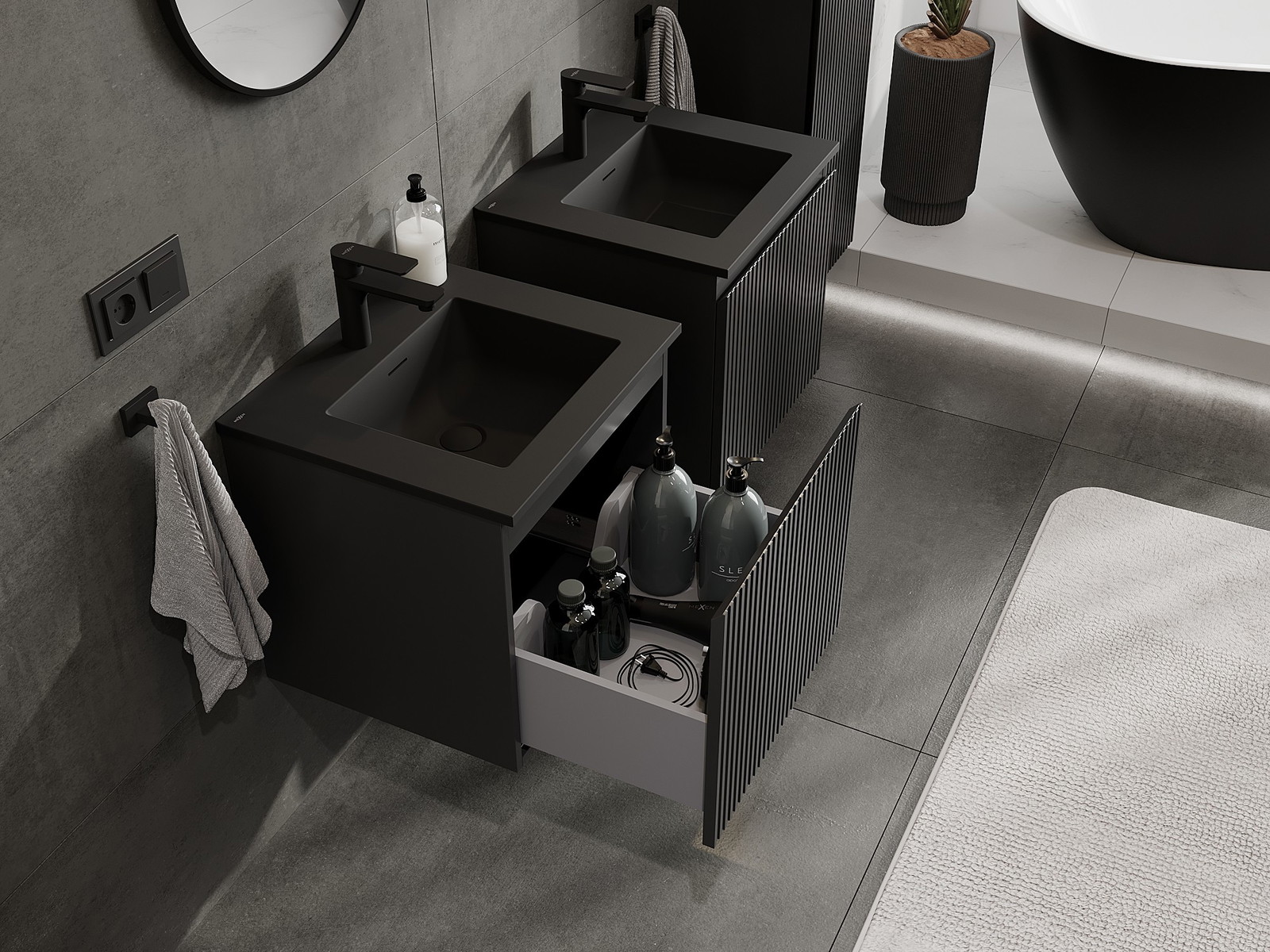 Mexen Rivel шкаф за баня 50 см с мивка Otis, 1 чекмедже, гофриран, черен мат