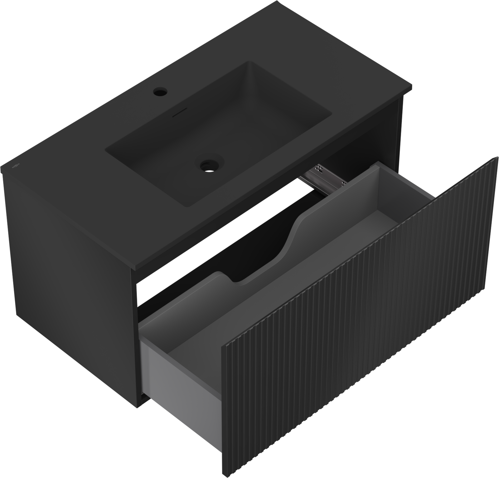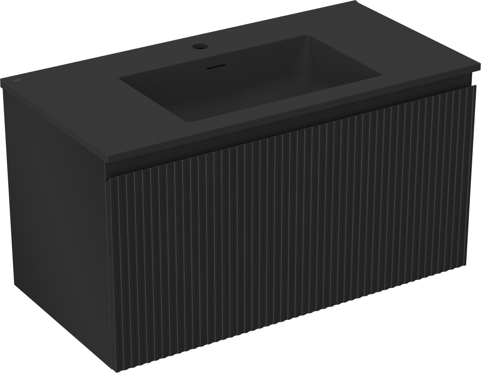 Mexen Rivel шкаф за баня 90 см с мивка Otis, 1 чекмедже, с оребрена структура, матово черно - 91A20-09047-1-BF71-W18M71
