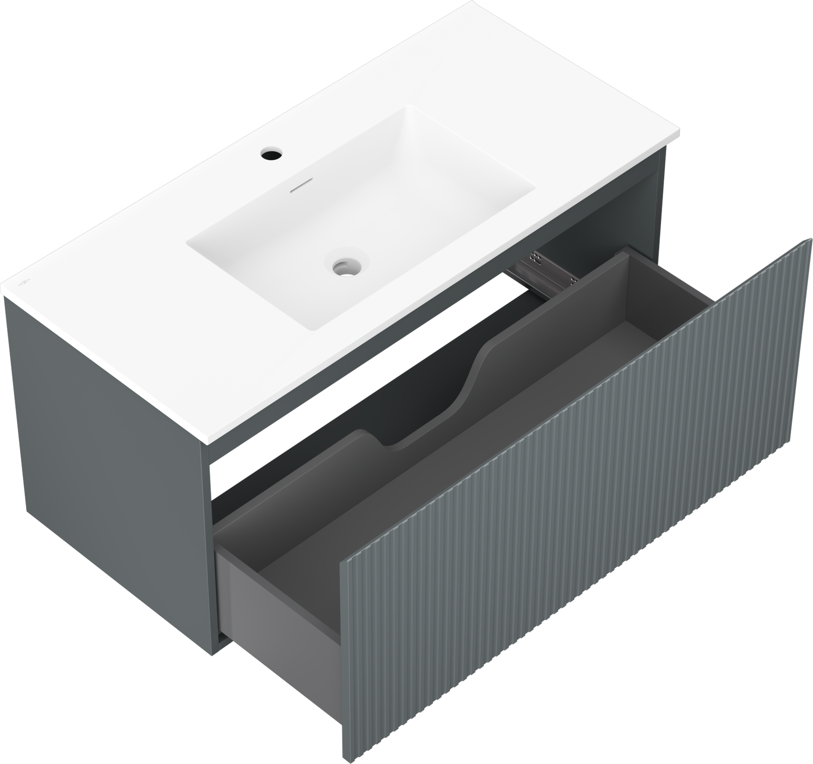 Mexen Rivel шкаф за баня 100 см с мивка Otis, 1 чекмедже, оребрена, графит мат/бял мат - 91A20-10047-1-BF66-W18M01