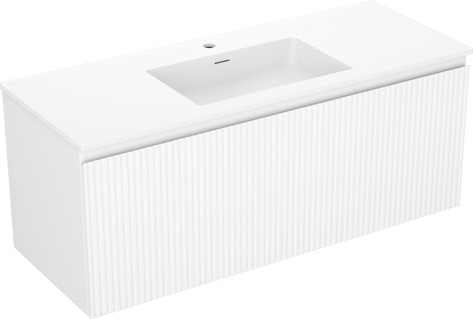 Mexen Rivel шкаф за баня 120 см с мивка Otis, 1 чекмедже, оребрена, бяла мат - 91A20-12047-1-BF01-W18M01