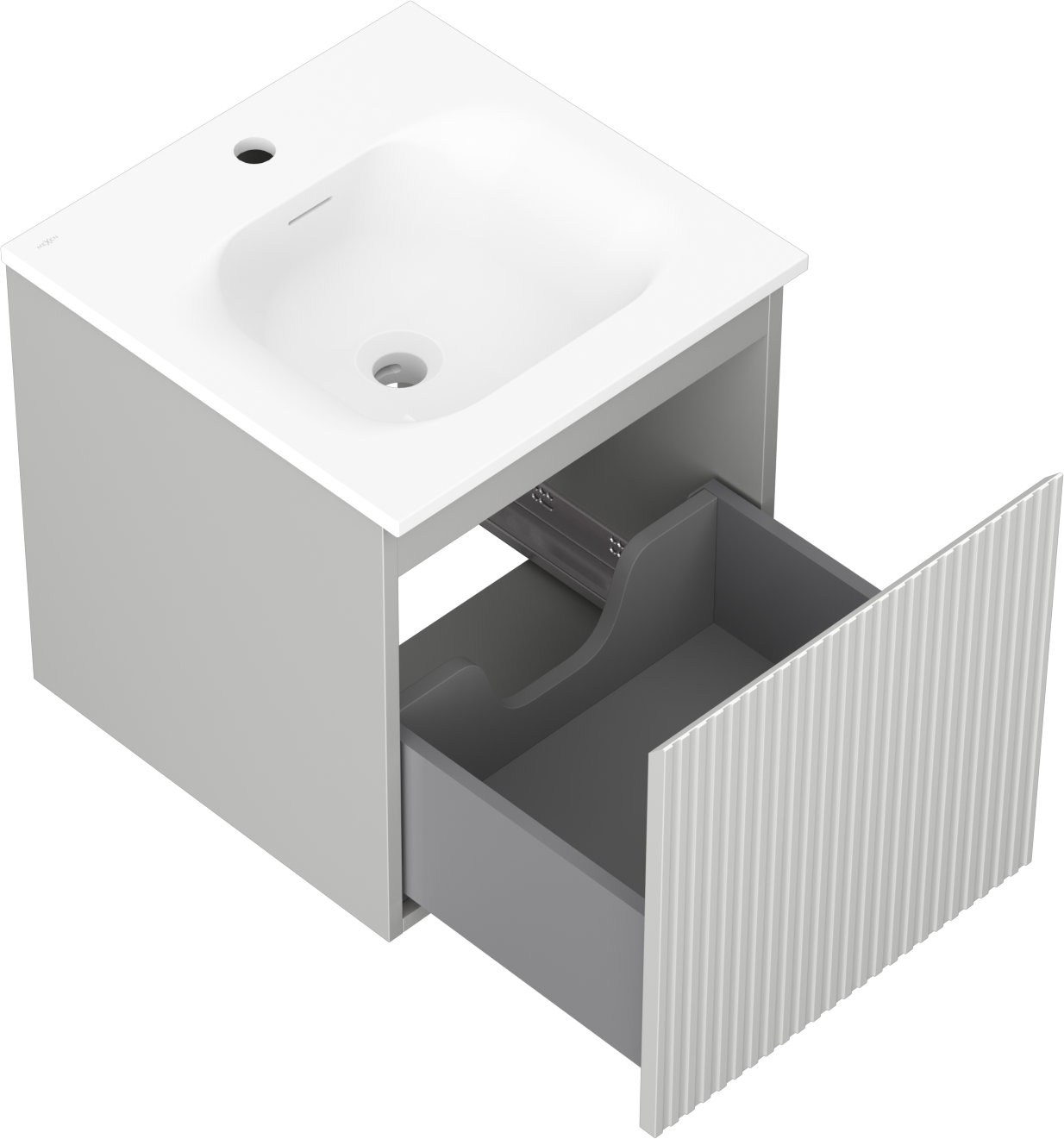 Изрезът в чекмеджето е проектиран по такъв начин, че да побере сифона, който е необходим в мивковите инсталации. Благодарение на това мебелът може да бъде монтиран напълно функционално, без да се налага отказване от пространството в чекмеджето заради инсталацията.
