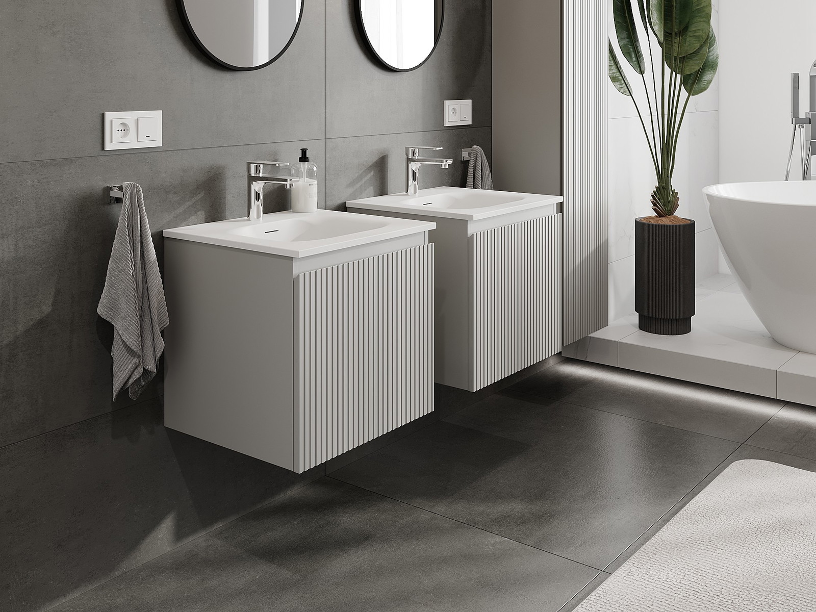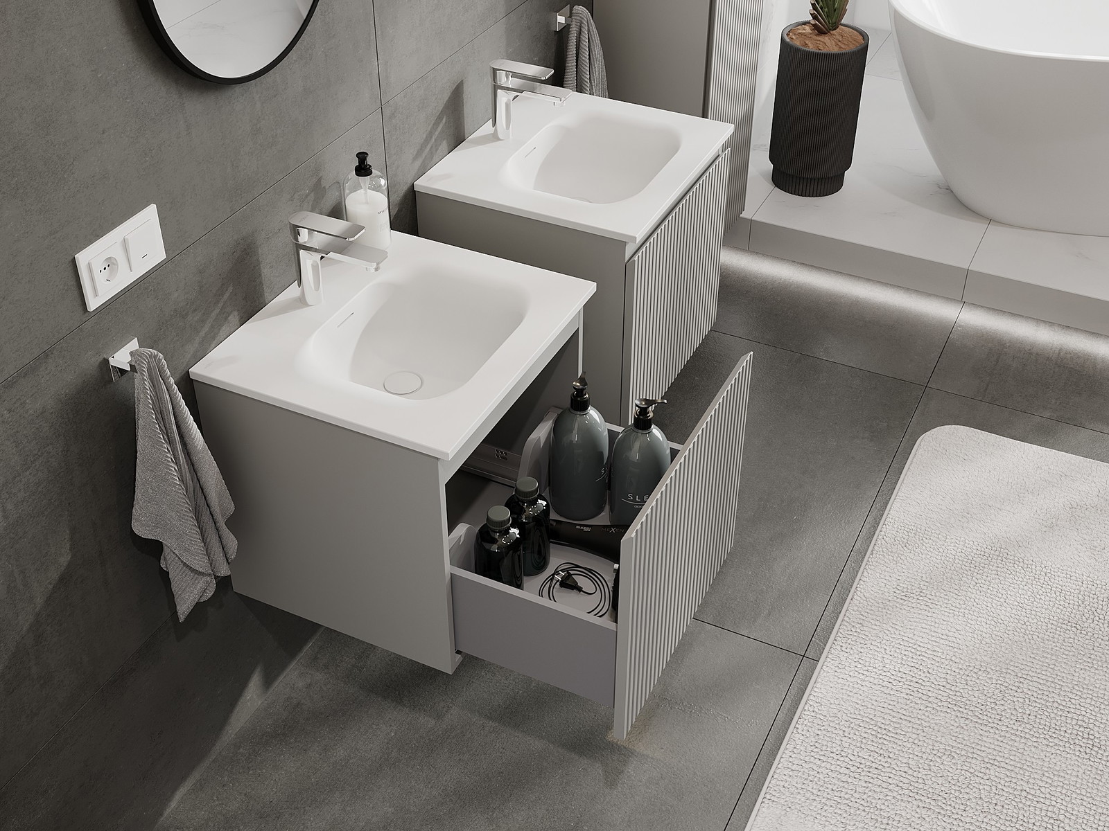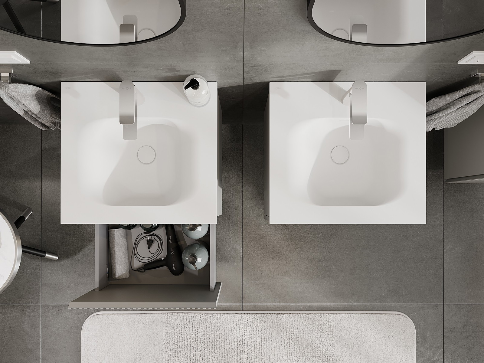 Нашите модулни мебели за баня могат да се комбинират в различни цветови конфигурации, което позволява пълна персонализация. Може да се избере както външният вид, така и функциите на отделните елементи, което позволява съчетаване на мебелите със собствените стилови и функционални предпочитания.