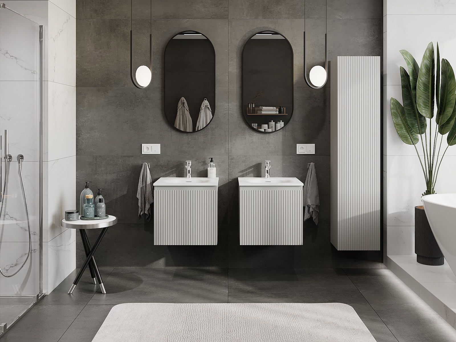 Корпусът на шкафа се доставя напълно сглобен, което означава максимално удобство и спестяване на време. Не е нужно да губите часове за сглобяване на мебела – просто го монтирайте на избраното място в банята. Това е идеалното решение за хора, които ценят бързия монтаж и незабавния ефект.