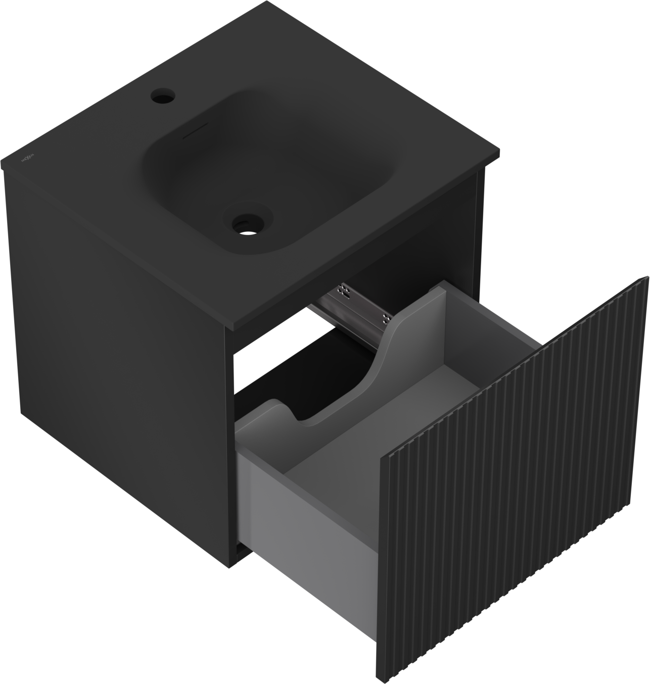 Изрезът в чекмеджето е проектиран по такъв начин, че да побере сифона, който е необходим в мивковите инсталации. Благодарение на това мебелът може да бъде монтиран напълно функционално, без да се налага отказване от пространството в чекмеджето заради инсталацията.