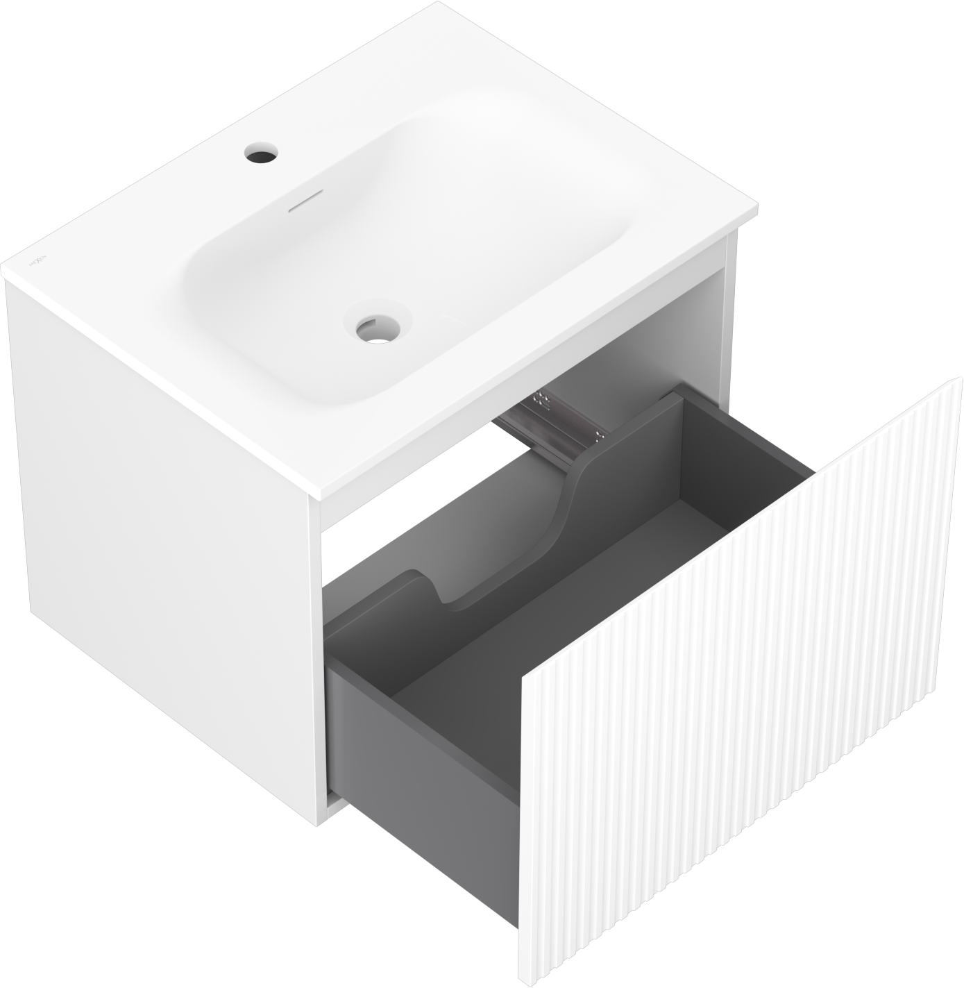 Изрезът в чекмеджето е проектиран по такъв начин, че да побере сифона, който е необходим в мивковите инсталации. Благодарение на това мебелът може да бъде монтиран напълно функционално, без да се налага отказване от пространството в чекмеджето заради инсталацията.