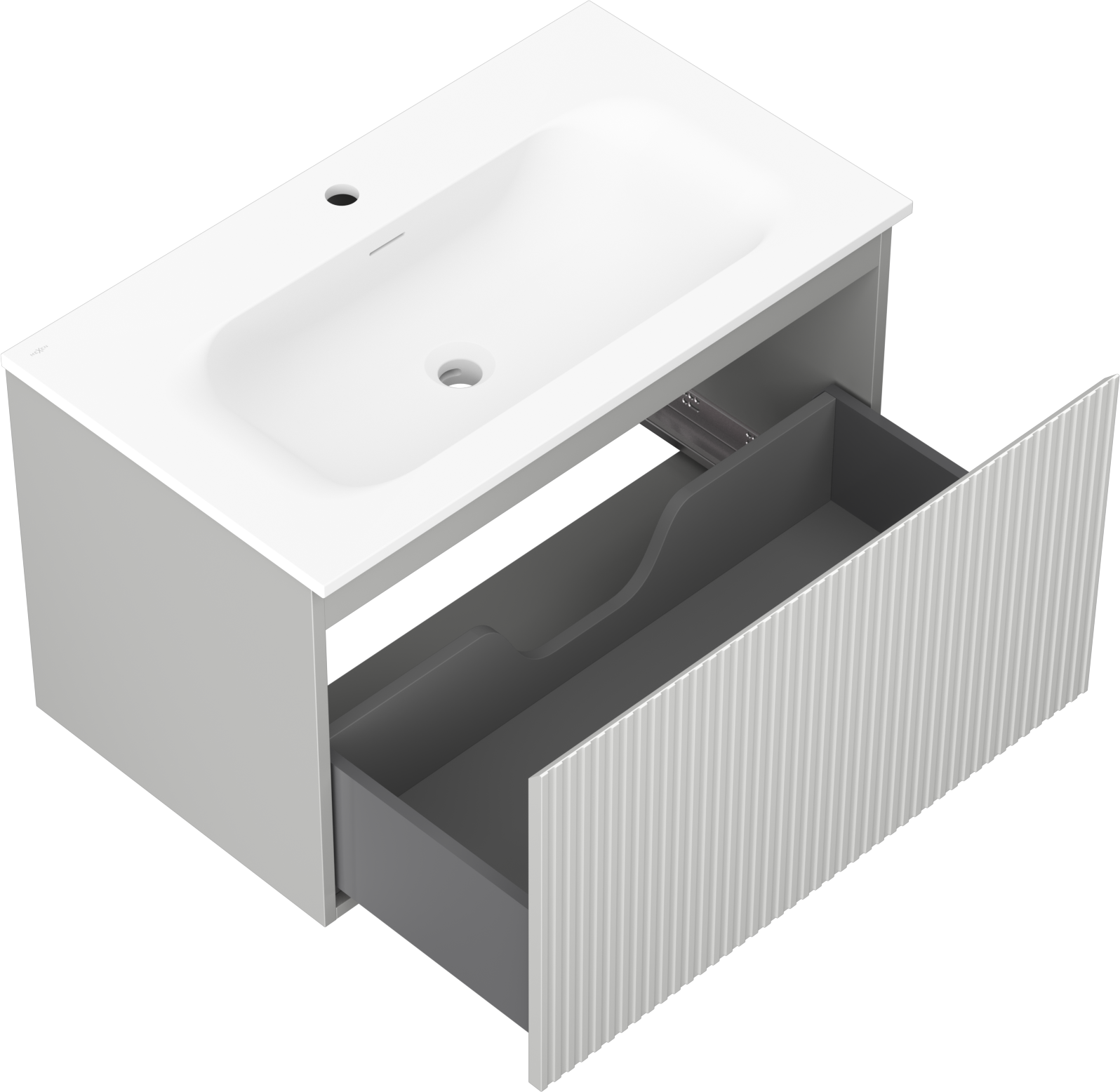 Изрезът в чекмеджето е проектиран по такъв начин, че да побере сифона, който е необходим в мивковите инсталации. Благодарение на това мебелът може да бъде монтиран напълно функционално, без да се налага отказване от пространството в чекмеджето заради инсталацията.