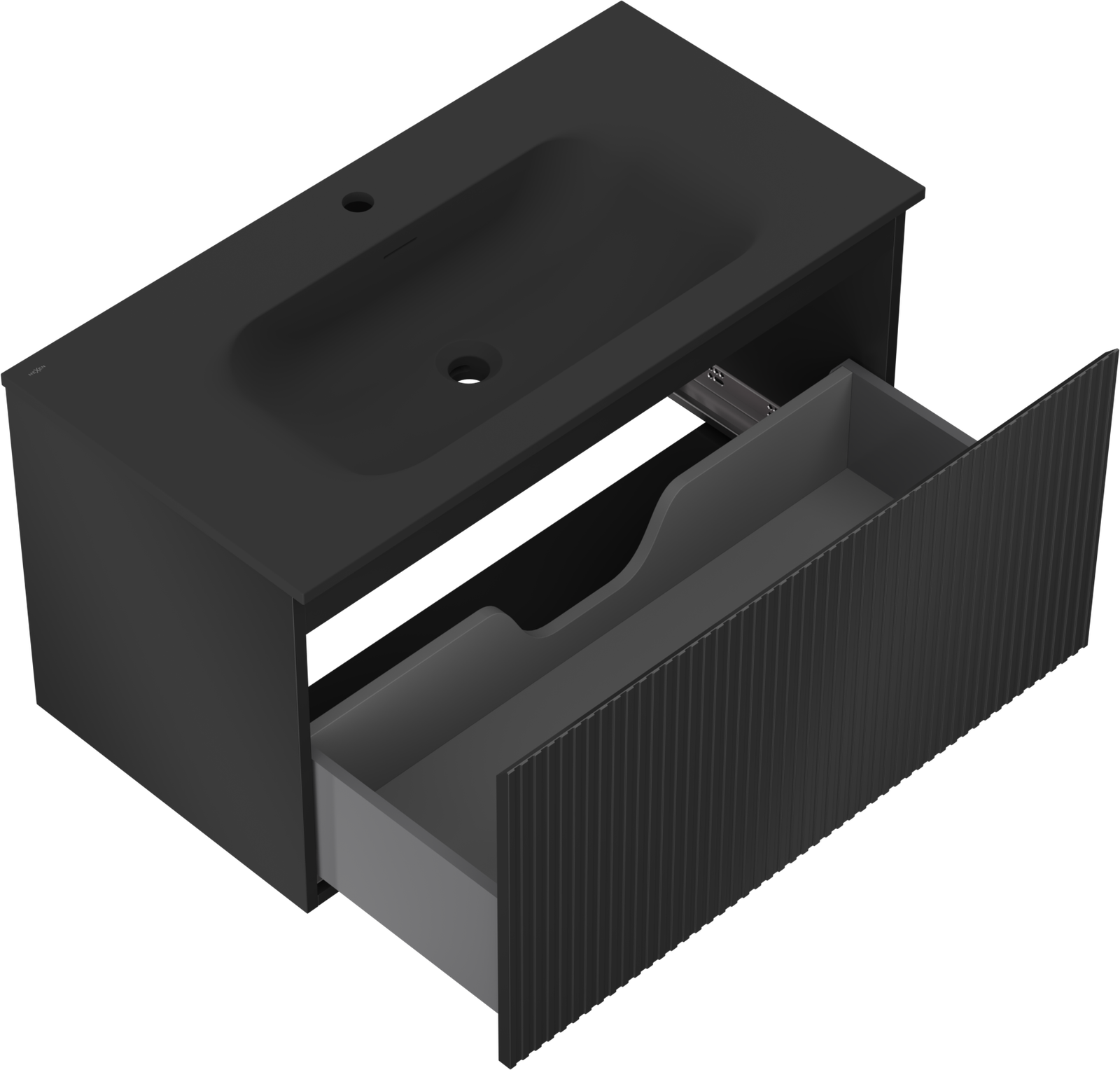 Изрезът в чекмеджето е проектиран по такъв начин, че да побере сифона, който е необходим в мивковите инсталации. Благодарение на това мебелът може да бъде монтиран напълно функционално, без да се налага отказване от пространството в чекмеджето заради инсталацията.