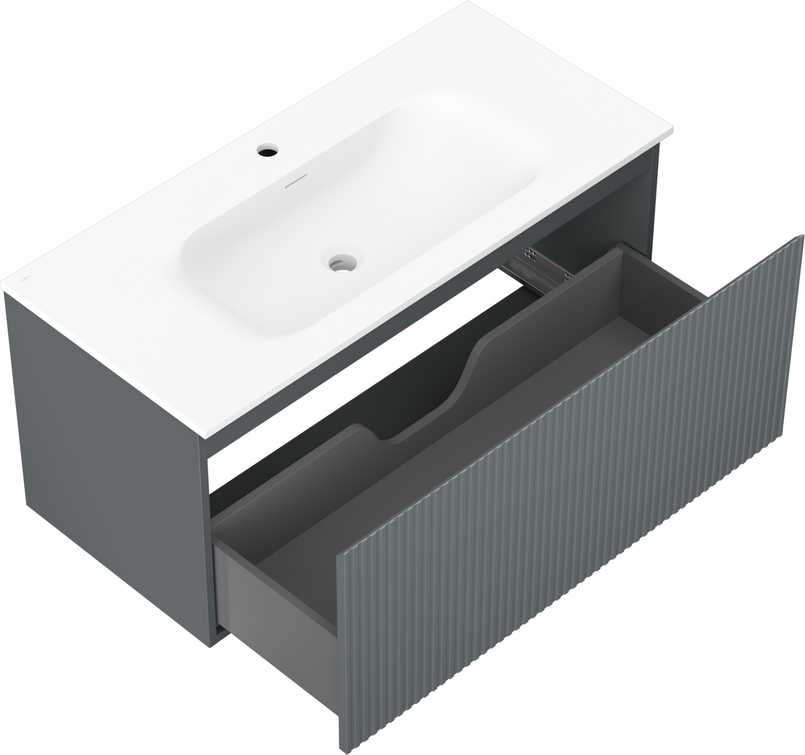 Изрезът в чекмеджето е проектиран по такъв начин, че да побере сифона, който е необходим в мивковите инсталации. Благодарение на това мебелът може да бъде монтиран напълно функционално, без да се налага отказване от пространството в чекмеджето заради инсталацията.