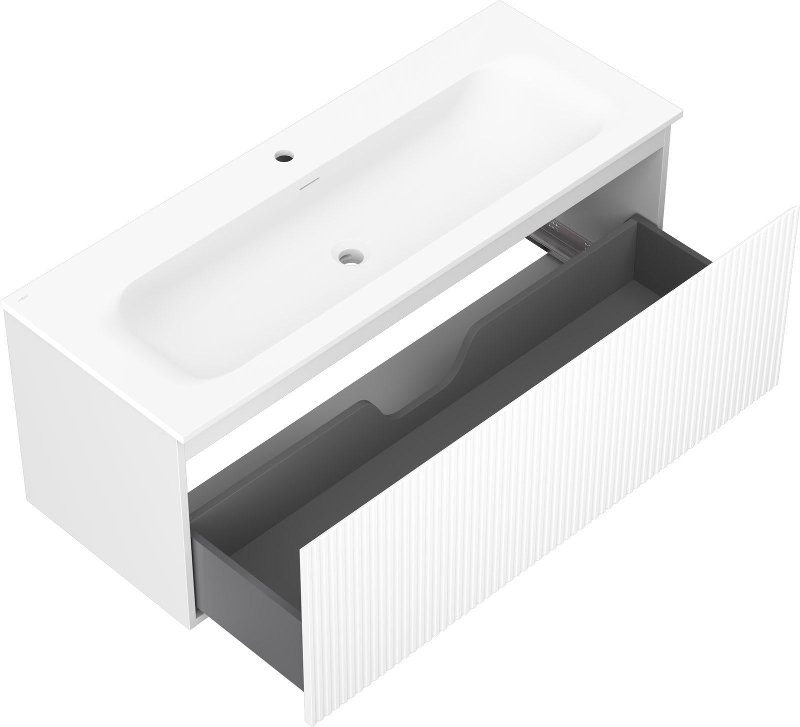 Изрезът в чекмеджето е проектиран по такъв начин, че да побере сифона, който е необходим в мивковите инсталации. Благодарение на това мебелът може да бъде монтиран напълно функционално, без да се налага отказване от пространството в чекмеджето заради инсталацията.