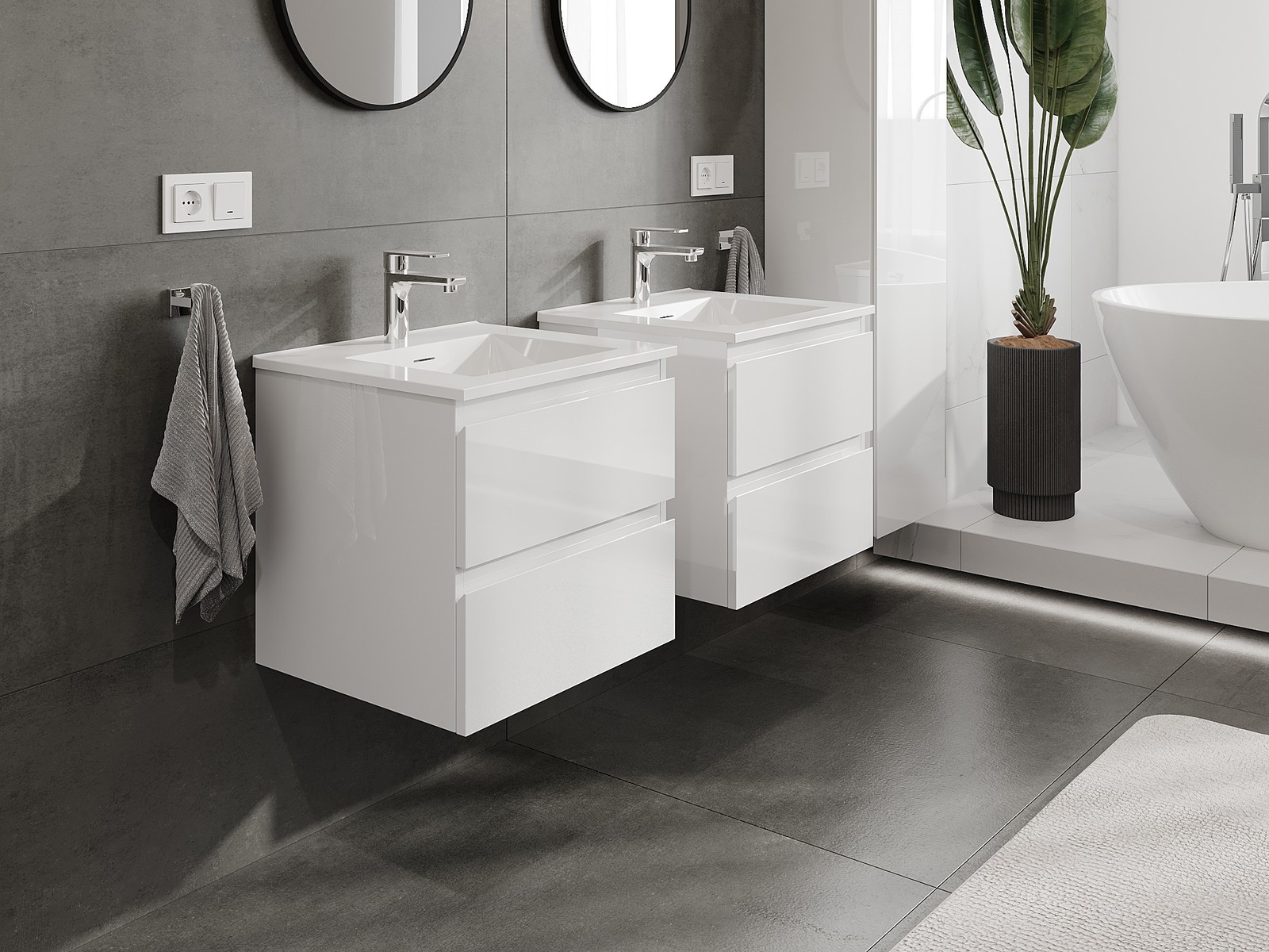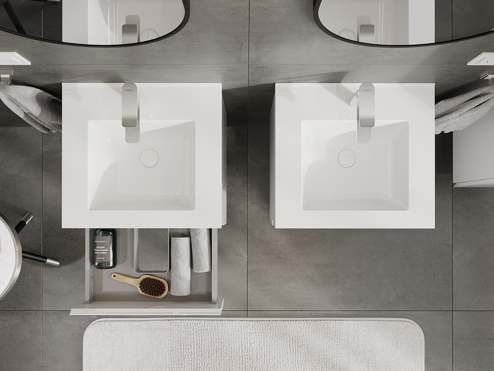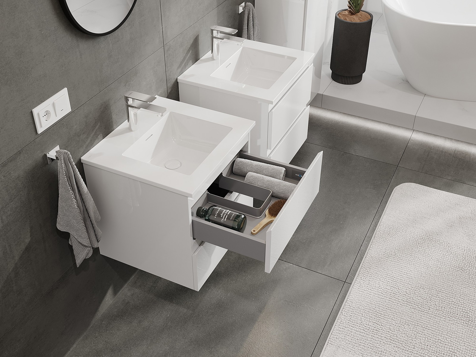 Нашите модулни мебели за баня могат да се комбинират в различни цветови конфигурации, което позволява пълна персонализация. Може да се избере както външният вид, така и функциите на отделните елементи, което позволява съчетаване на мебелите със собствените стилови и функционални предпочитания.