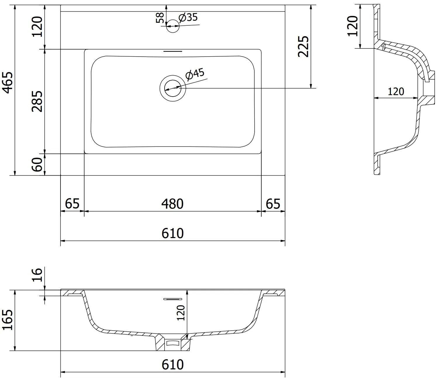 Размери на мивката: