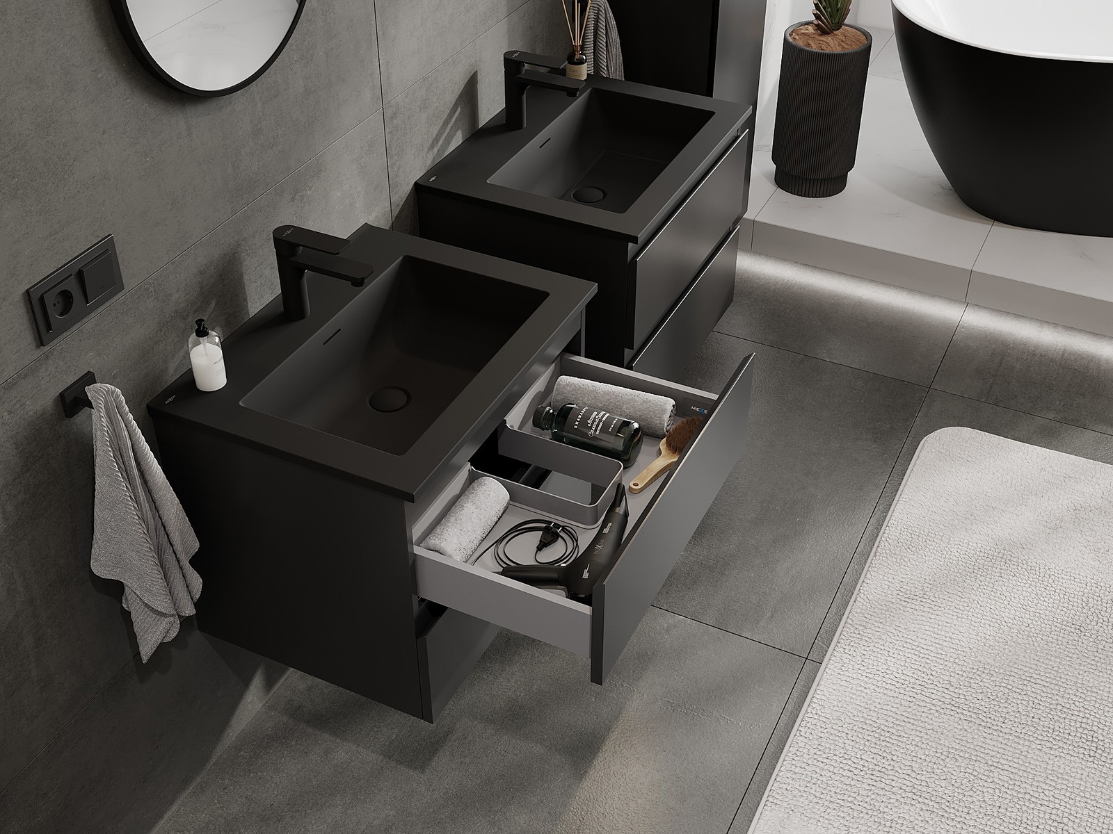 Нашите модулни мебели за баня могат да се комбинират в различни цветови конфигурации, което позволява пълна персонализация. Може да се избере както външният вид, така и функциите на отделните елементи, което позволява съчетаване на мебелите със собствените стилови и функционални предпочитания.