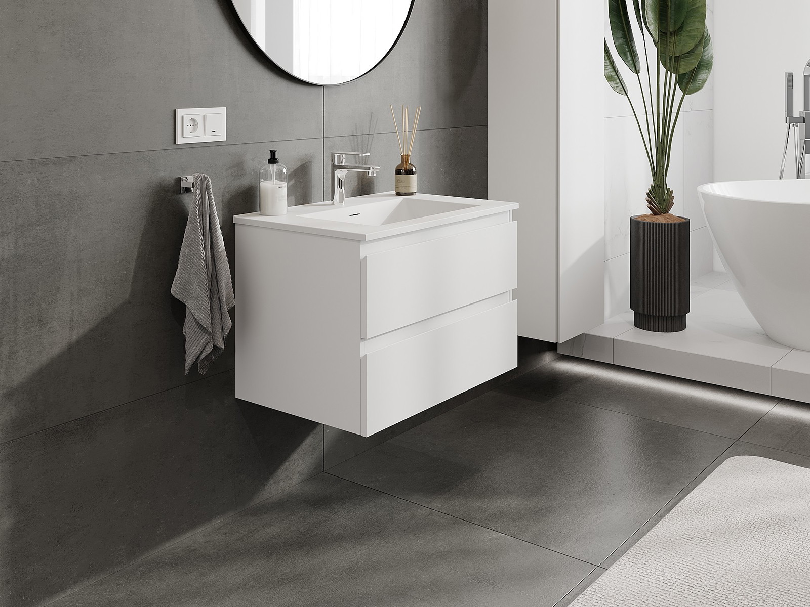 Корпусът на шкафа се доставя напълно сглобен, което означава максимално удобство и спестяване на време. Не е нужно да губите часове за сглобяване на мебела – просто го монтирайте на избраното място в банята. Това е идеалното решение за хора, които ценят бързия монтаж и незабавния ефект.