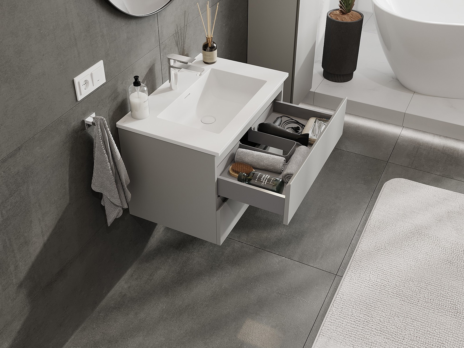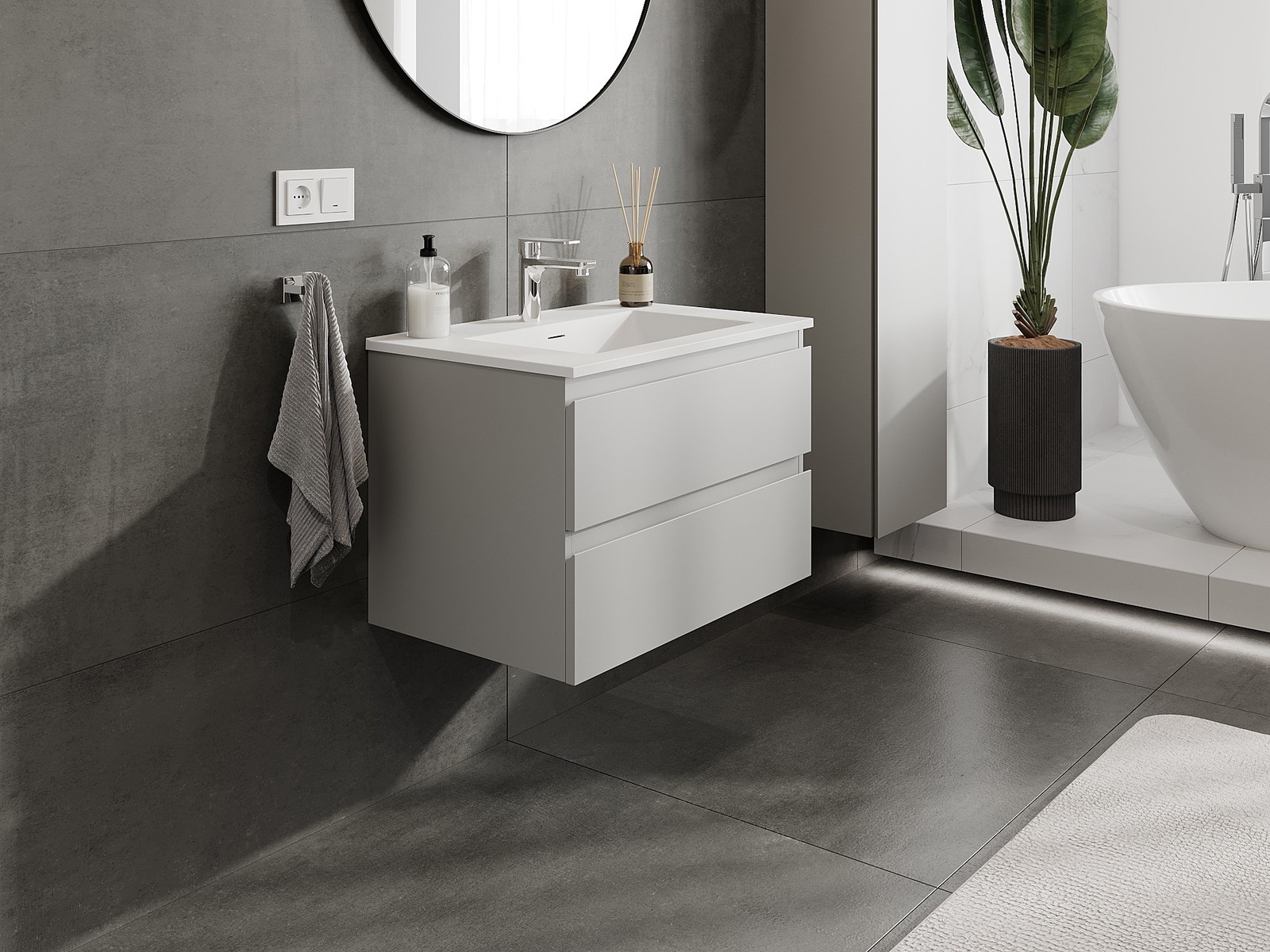 Корпусът на шкафа се доставя напълно сглобен, което означава максимално удобство и спестяване на време. Не е нужно да губите часове за сглобяване на мебела – просто го монтирайте на избраното място в банята. Това е идеалното решение за хора, които ценят бързия монтаж и незабавния ефект.