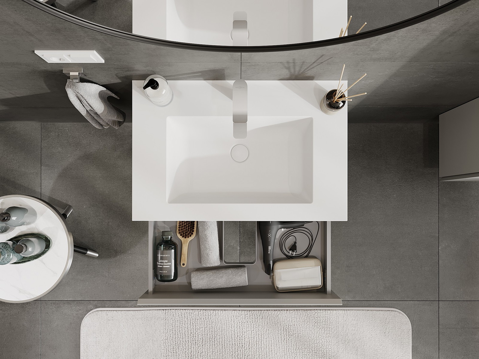 Изрезът в чекмеджето е проектиран по такъв начин, че да побере сифона, който е необходим в мивковите инсталации. Благодарение на това мебелът може да бъде монтиран напълно функционално, без да се налага отказване от пространството в чекмеджето заради инсталацията.