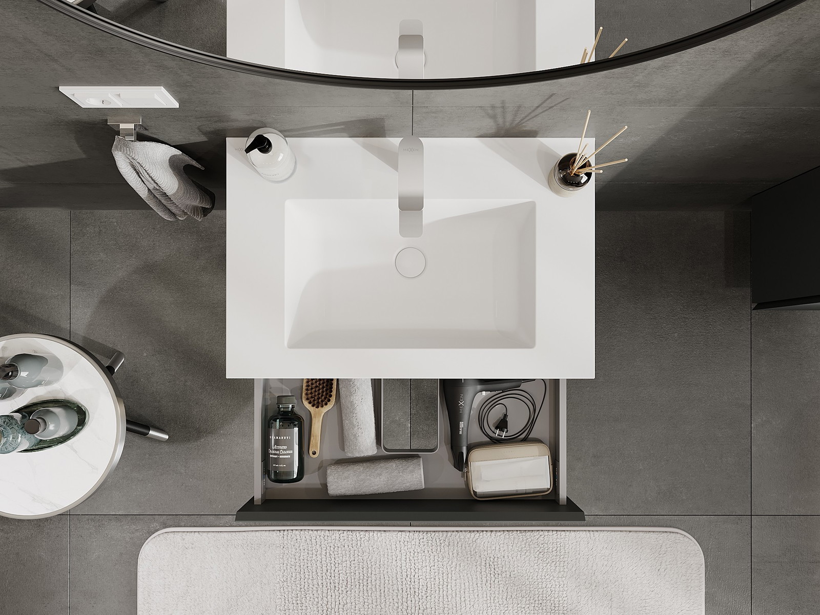 Изрезът в чекмеджето е проектиран по такъв начин, че да побере сифона, който е необходим в мивковите инсталации. Благодарение на това мебелът може да бъде монтиран напълно функционално, без да се налага отказване от пространството в чекмеджето заради инсталацията.