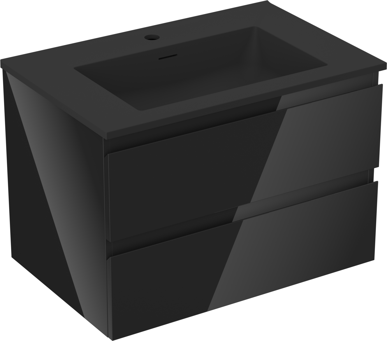 Mexen Orio шкаф за баня 70 см с мивка Otis, 2 чекмеджета, черен гланц/черен мат - 91A10-07047-2-BFF70-W18M71