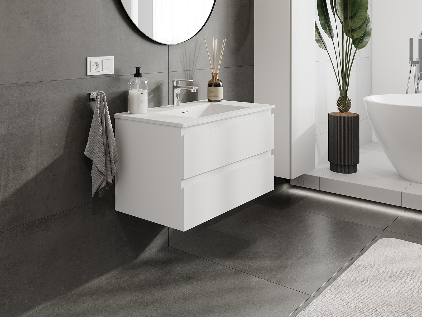 Корпусът на шкафа се доставя напълно сглобен, което означава максимално удобство и спестяване на време. Не е нужно да губите часове за сглобяване на мебела – просто го монтирайте на избраното място в банята. Това е идеалното решение за хора, които ценят бързия монтаж и незабавния ефект.