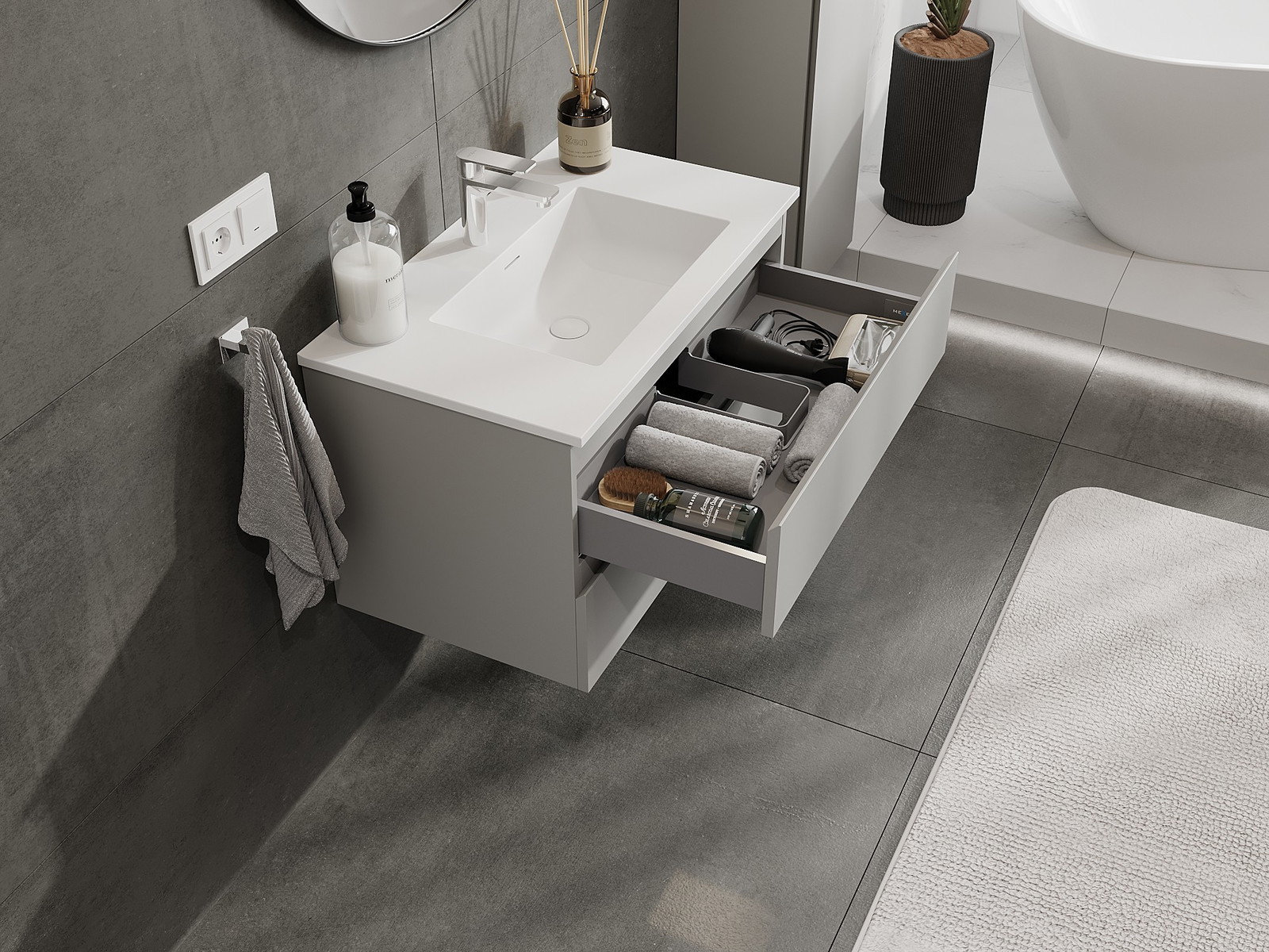 Нашите модулни мебели за баня могат да се комбинират в различни цветови конфигурации, което позволява пълна персонализация. Може да се избере както външният вид, така и функциите на отделните елементи, което позволява съчетаване на мебелите със собствените стилови и функционални предпочитания.