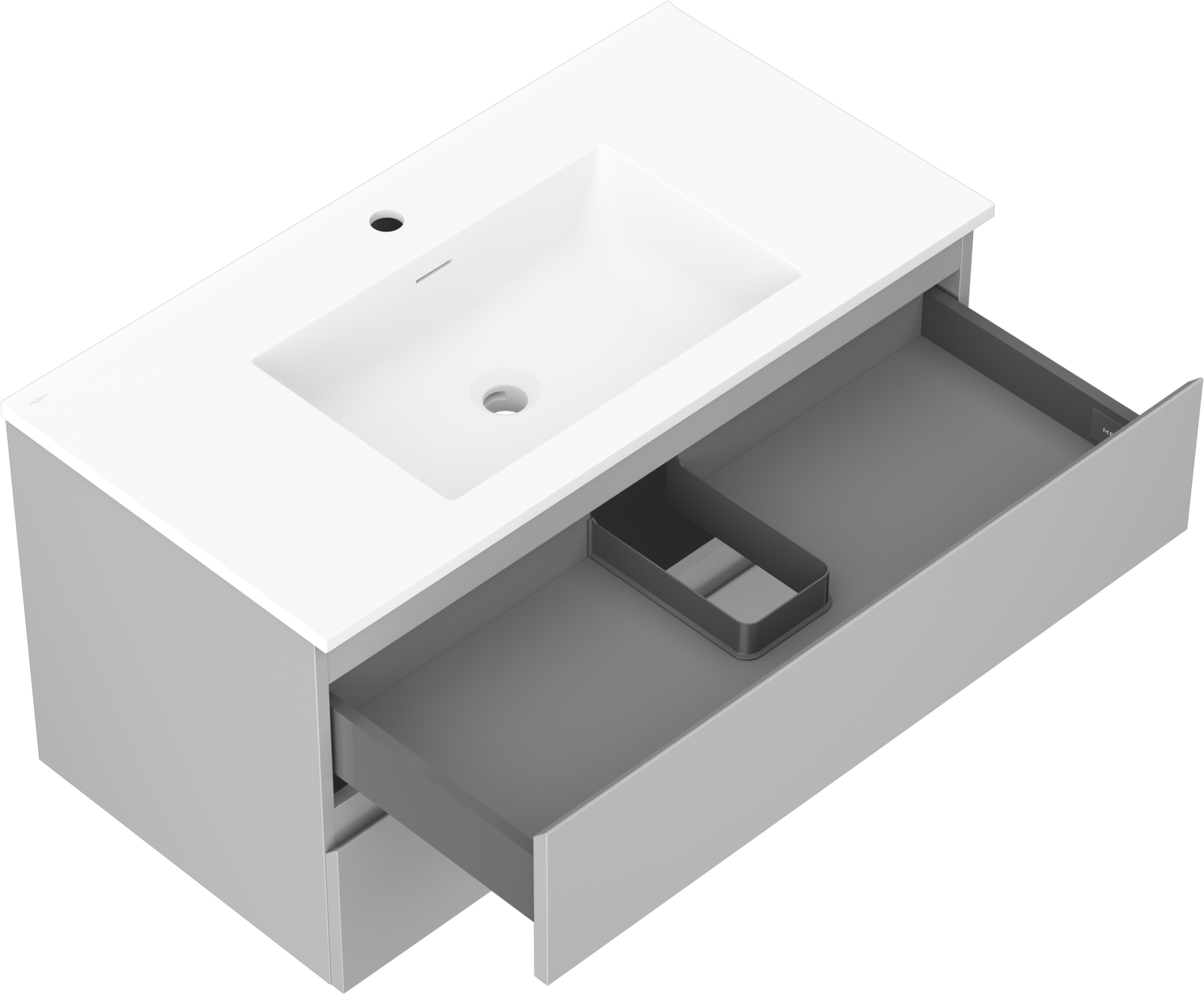 Mexen Orio шкаф за баня 90 см с мивка Otis, 2 чекмеджета, сив мат/бял мат
