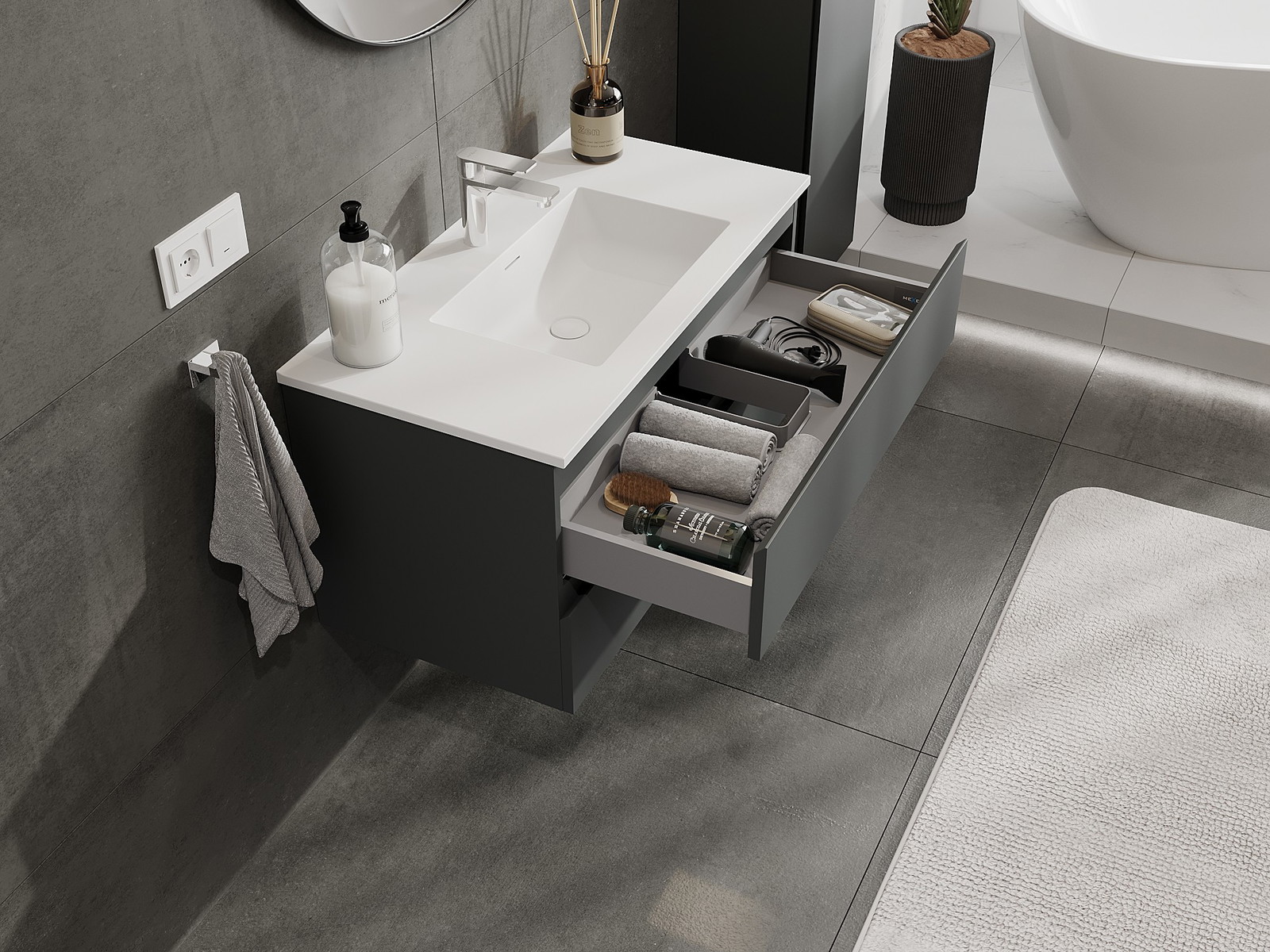 Нашите модулни мебели за баня могат да се комбинират в различни цветови конфигурации, което позволява пълна персонализация. Може да се избере както външният вид, така и функциите на отделните елементи, което позволява съчетаване на мебелите със собствените стилови и функционални предпочитания.