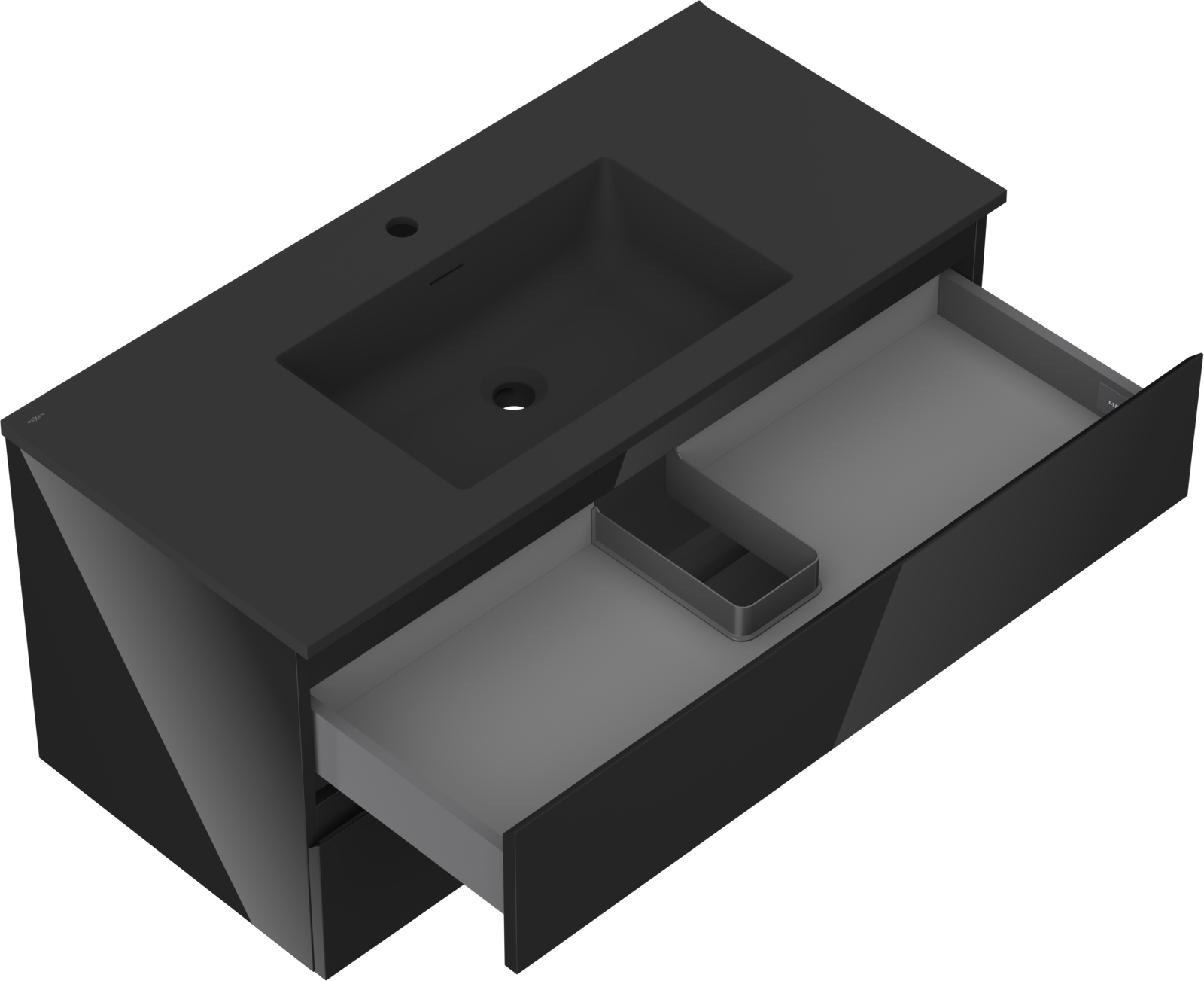 Mexen Orio шкаф за баня 100 см с мивка Otis, 2 чекмеджета, черен гланц/черен мат