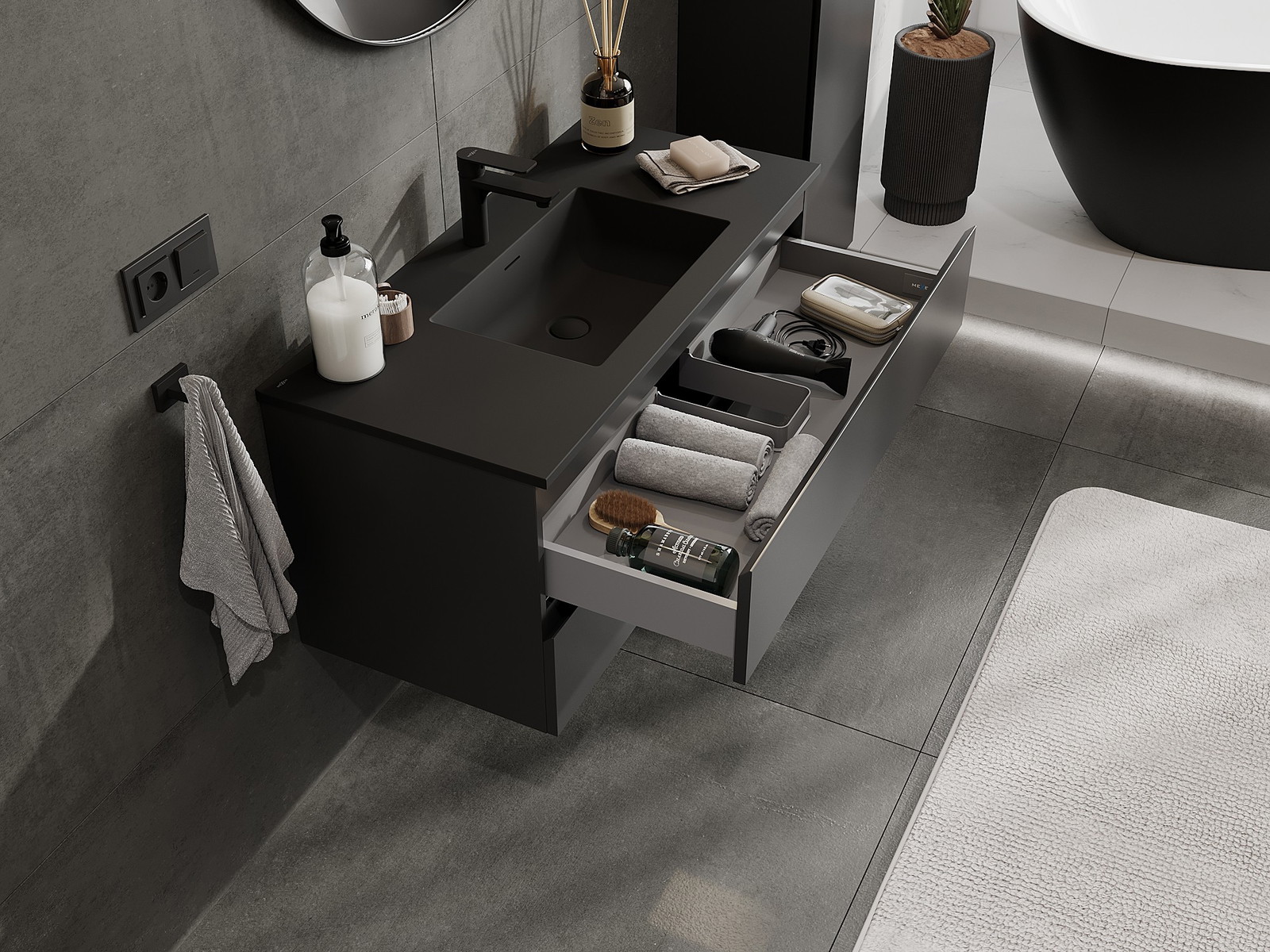 Нашите модулни мебели за баня могат да се комбинират в различни цветови конфигурации, което позволява пълна персонализация. Може да се избере както външният вид, така и функциите на отделните елементи, което позволява съчетаване на мебелите със собствените стилови и функционални предпочитания.