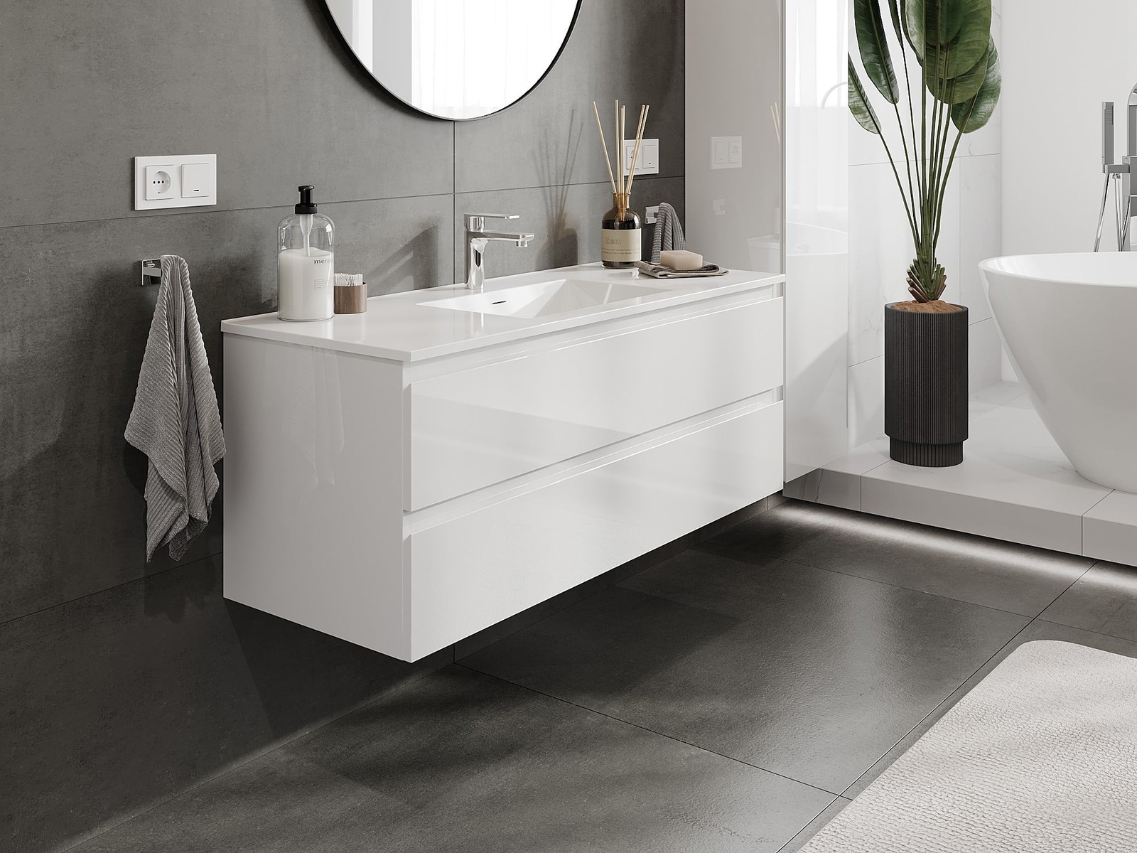 Корпусът на шкафа се доставя напълно сглобен, което означава максимално удобство и спестяване на време. Не е нужно да губите часове за сглобяване на мебела – просто го монтирайте на избраното място в банята. Това е идеалното решение за хора, които ценят бързия монтаж и незабавния ефект.