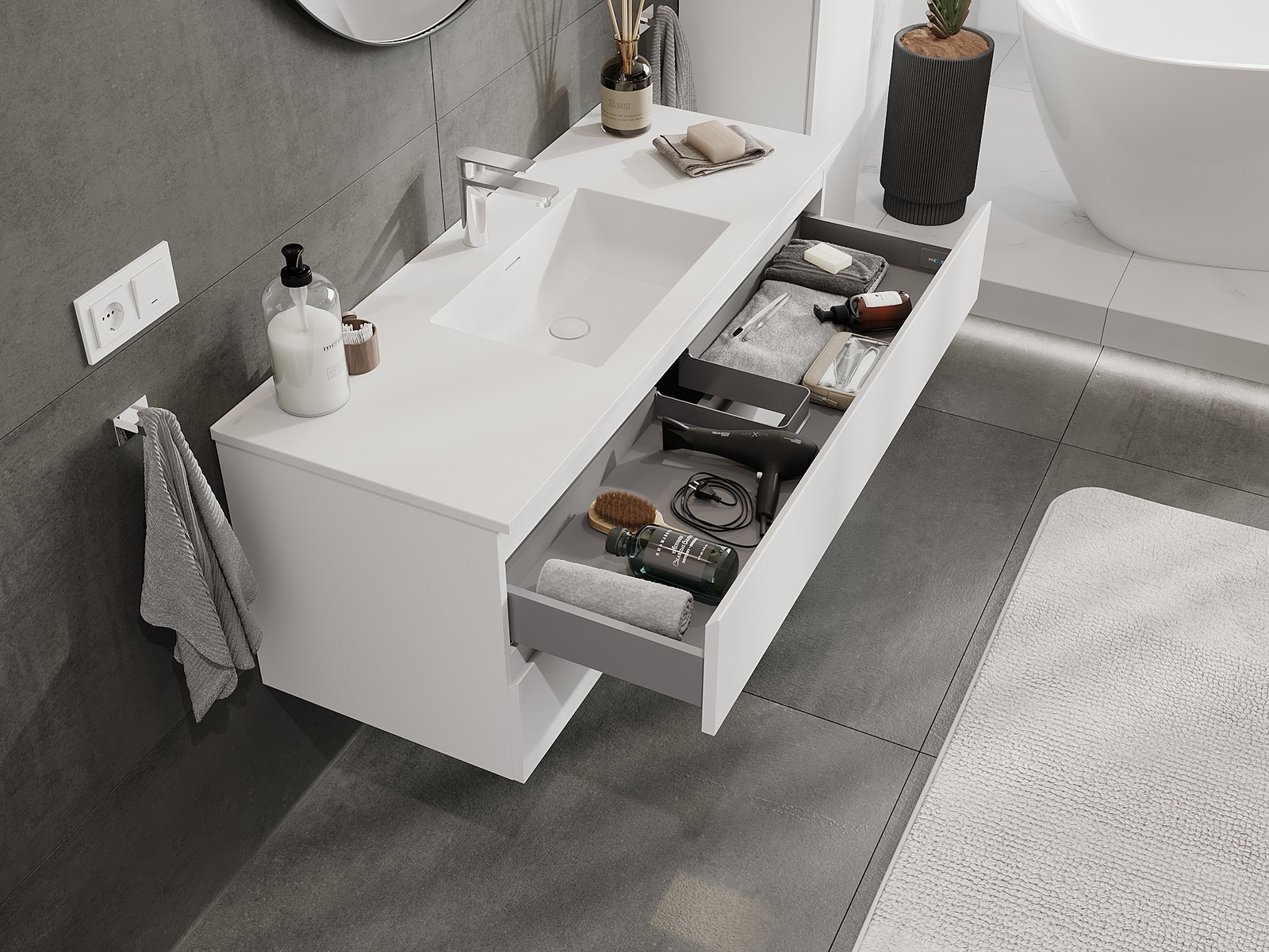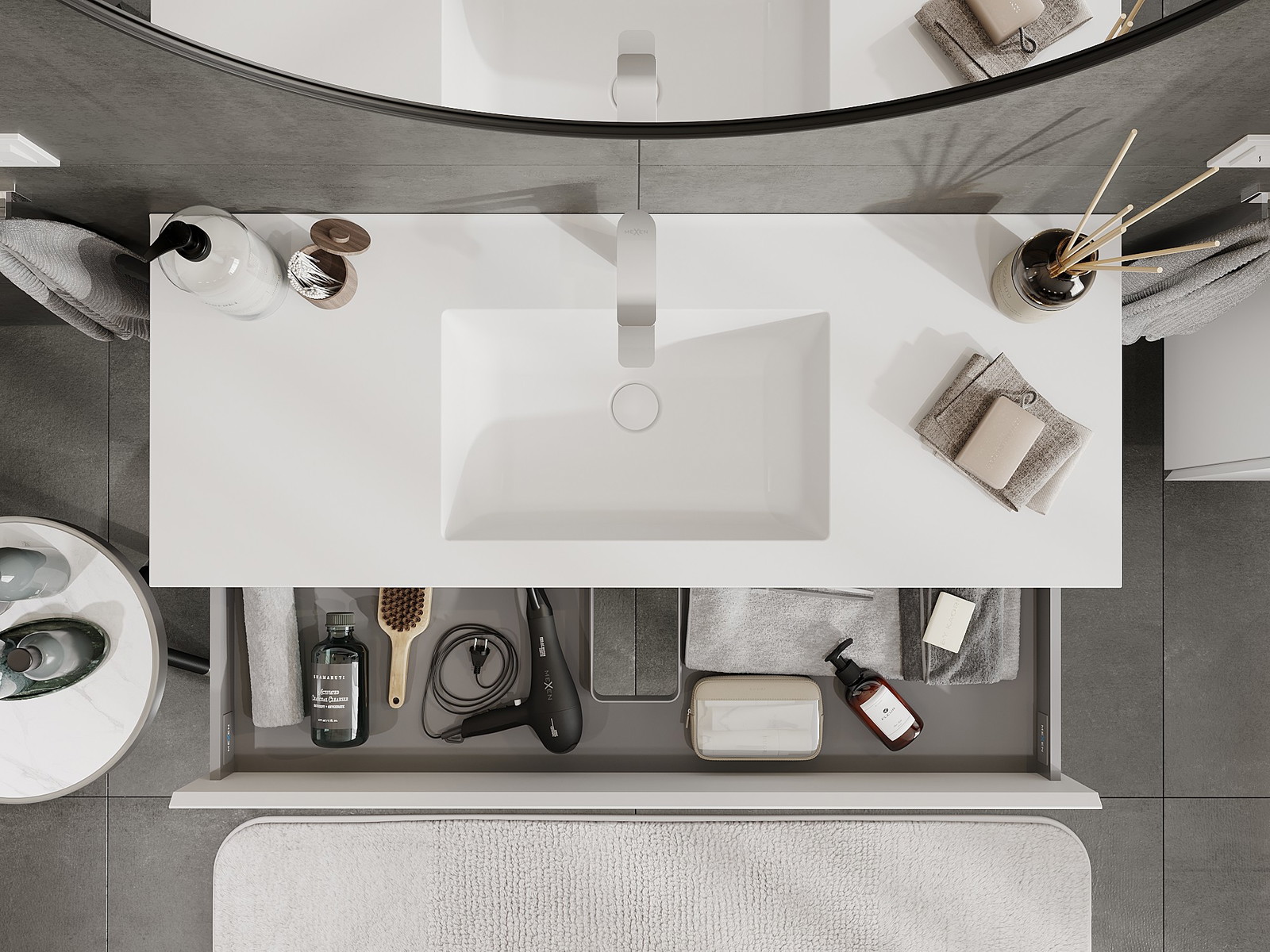 Нашите модулни мебели за баня могат да се комбинират в различни цветови конфигурации, което позволява пълна персонализация. Може да се избере както външният вид, така и функциите на отделните елементи, което позволява съчетаване на мебелите със собствените стилови и функционални предпочитания.