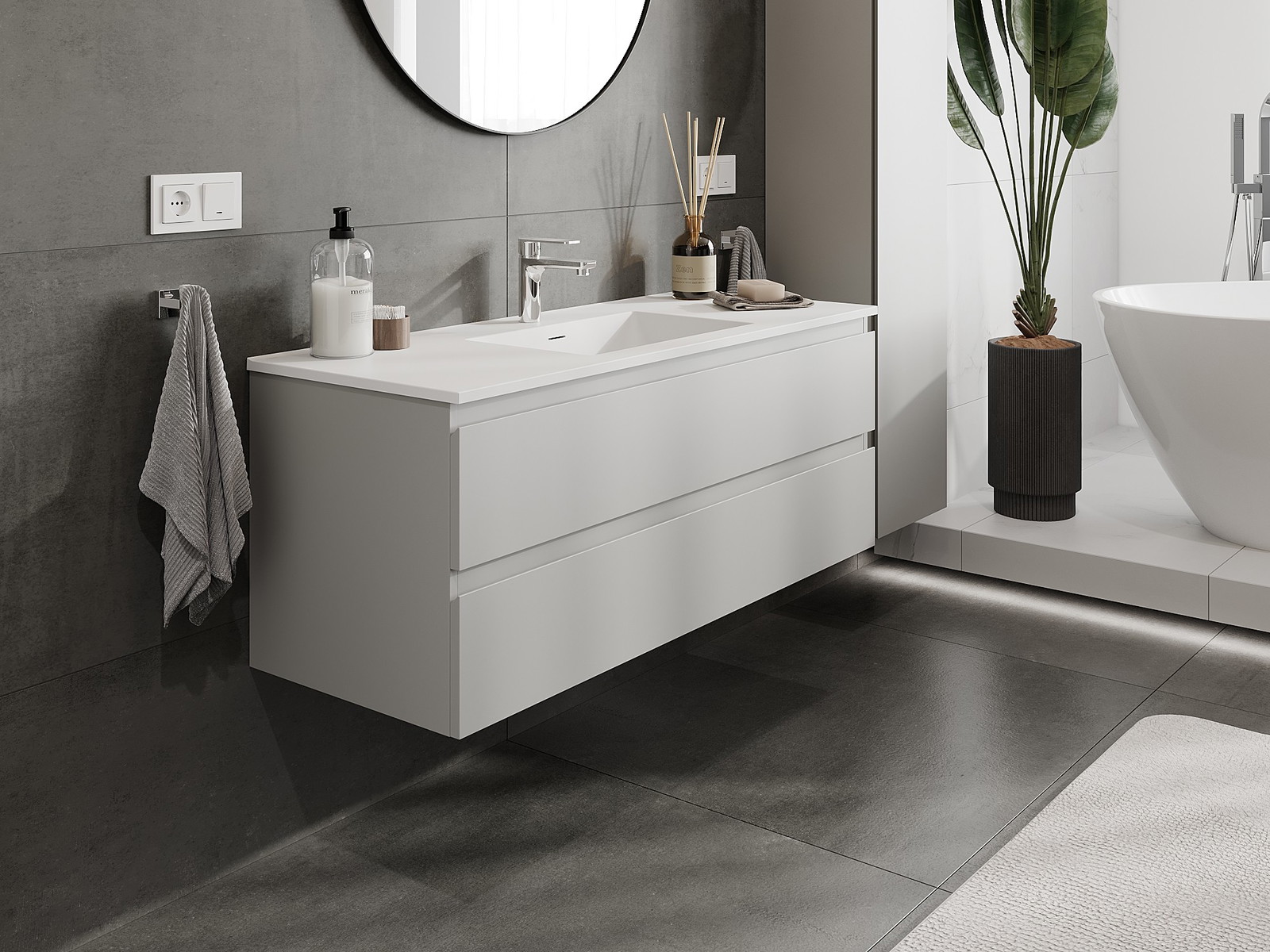 Корпусът на шкафа се доставя напълно сглобен, което означава максимално удобство и спестяване на време. Не е нужно да губите часове за сглобяване на мебела – просто го монтирайте на избраното място в банята. Това е идеалното решение за хора, които ценят бързия монтаж и незабавния ефект.