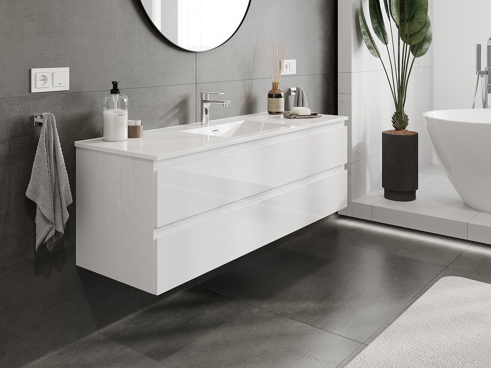 Корпусът на шкафа се доставя напълно сглобен, което означава максимално удобство и спестяване на време. Не е нужно да губите часове за сглобяване на мебела – просто го монтирайте на избраното място в банята. Това е идеалното решение за хора, които ценят бързия монтаж и незабавния ефект.