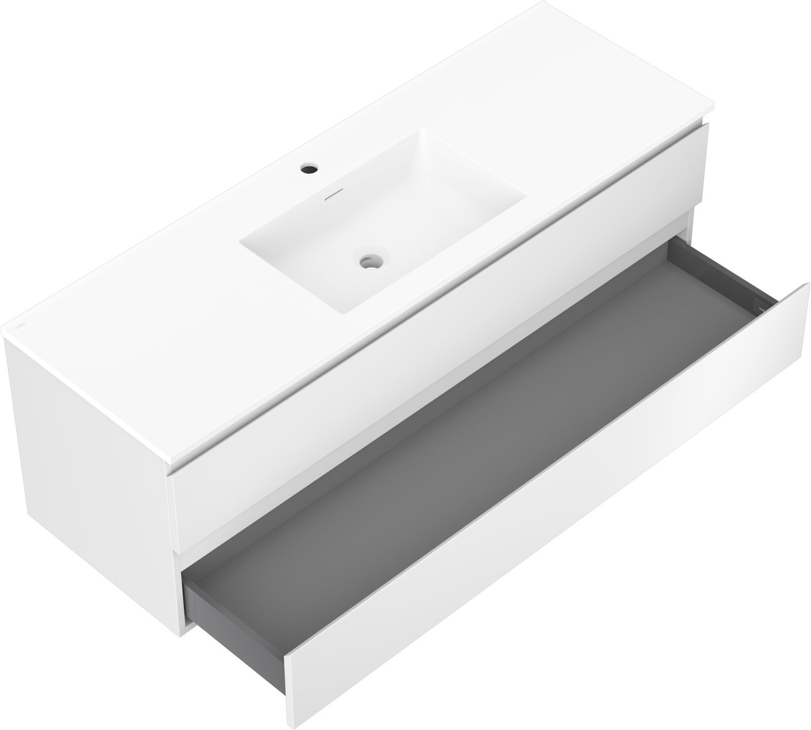 Изрезът в чекмеджето е проектиран по такъв начин, че да побере сифона, който е необходим в мивковите инсталации. Благодарение на това мебелът може да бъде монтиран напълно функционално, без да се налага отказване от пространството в чекмеджето заради инсталацията.