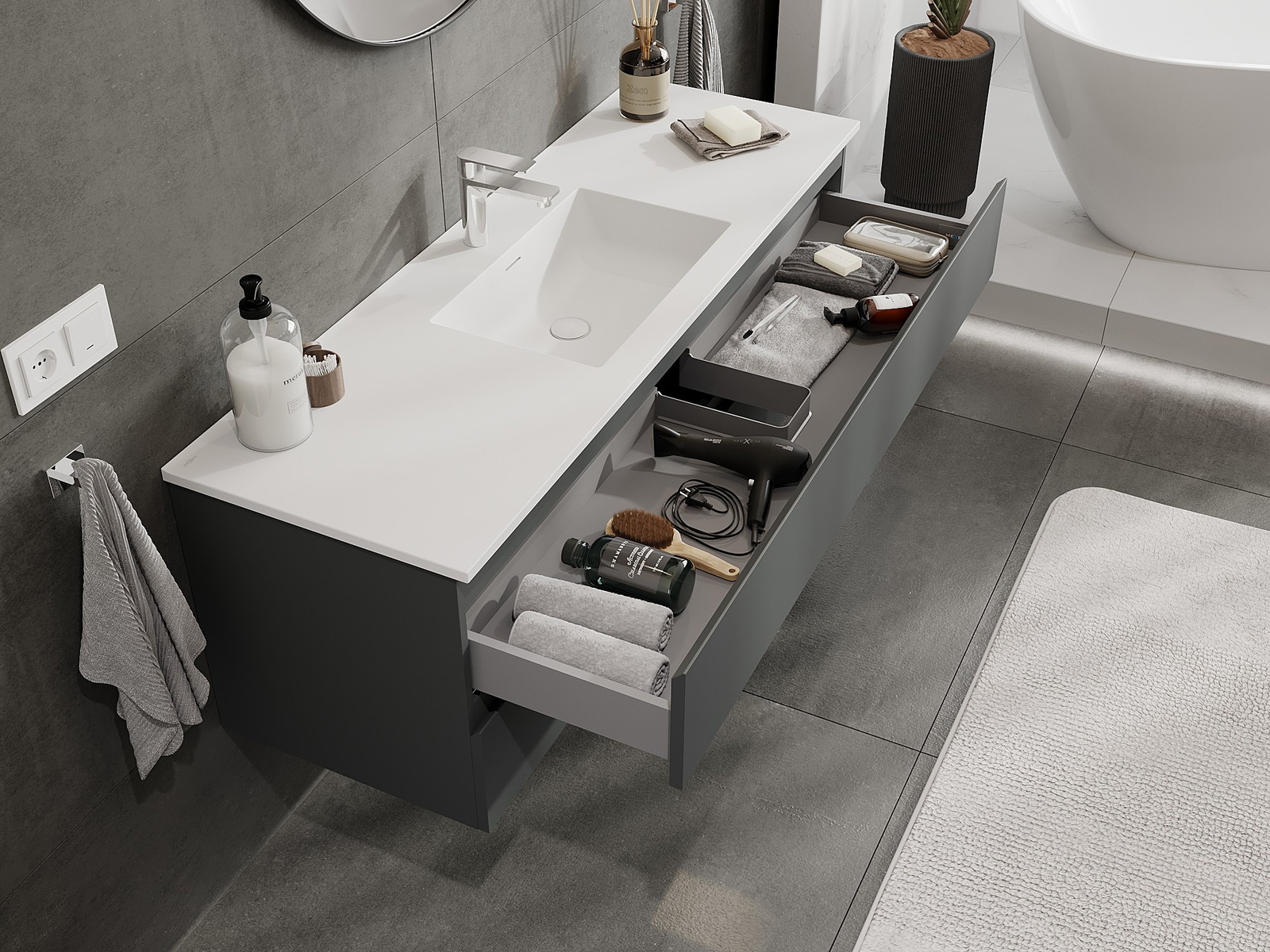 Нашите модулни мебели за баня могат да се комбинират в различни цветови конфигурации, което позволява пълна персонализация. Може да се избере както външният вид, така и функциите на отделните елементи, което позволява съчетаване на мебелите със собствените стилови и функционални предпочитания.