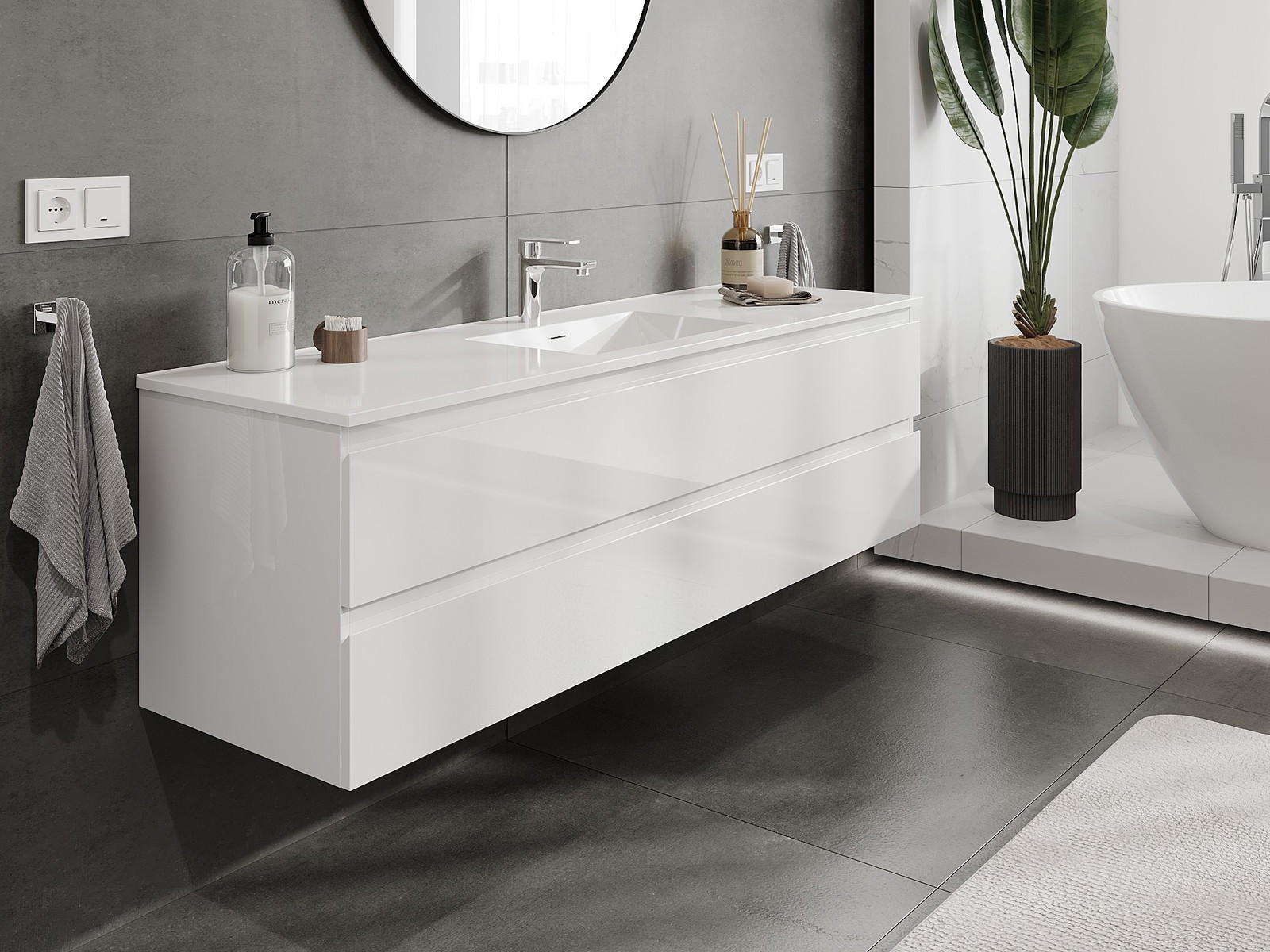 Корпусът на шкафа се доставя напълно сглобен, което означава максимално удобство и спестяване на време. Не е нужно да губите часове за сглобяване на мебела – просто го монтирайте на избраното място в банята. Това е идеалното решение за хора, които ценят бързия монтаж и незабавния ефект.