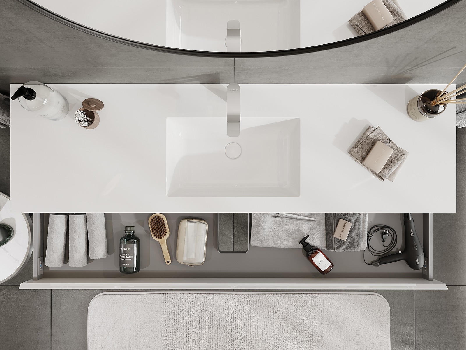 Изрезът в чекмеджето е проектиран по такъв начин, че да побере сифона, който е необходим в мивковите инсталации. Благодарение на това мебелът може да бъде монтиран напълно функционално, без да се налага отказване от пространството в чекмеджето заради инсталацията.