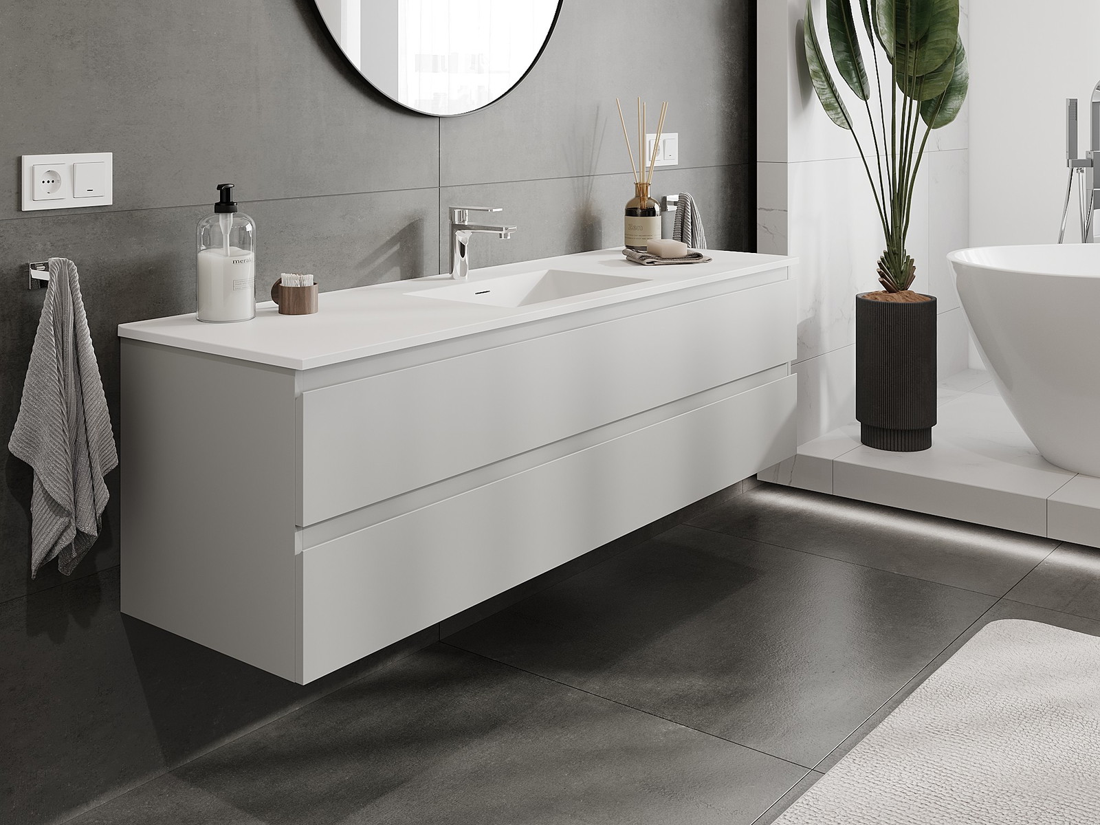 Корпусът на шкафа се доставя напълно сглобен, което означава максимално удобство и спестяване на време. Не е нужно да губите часове за сглобяване на мебела – просто го монтирайте на избраното място в банята. Това е идеалното решение за хора, които ценят бързия монтаж и незабавния ефект.