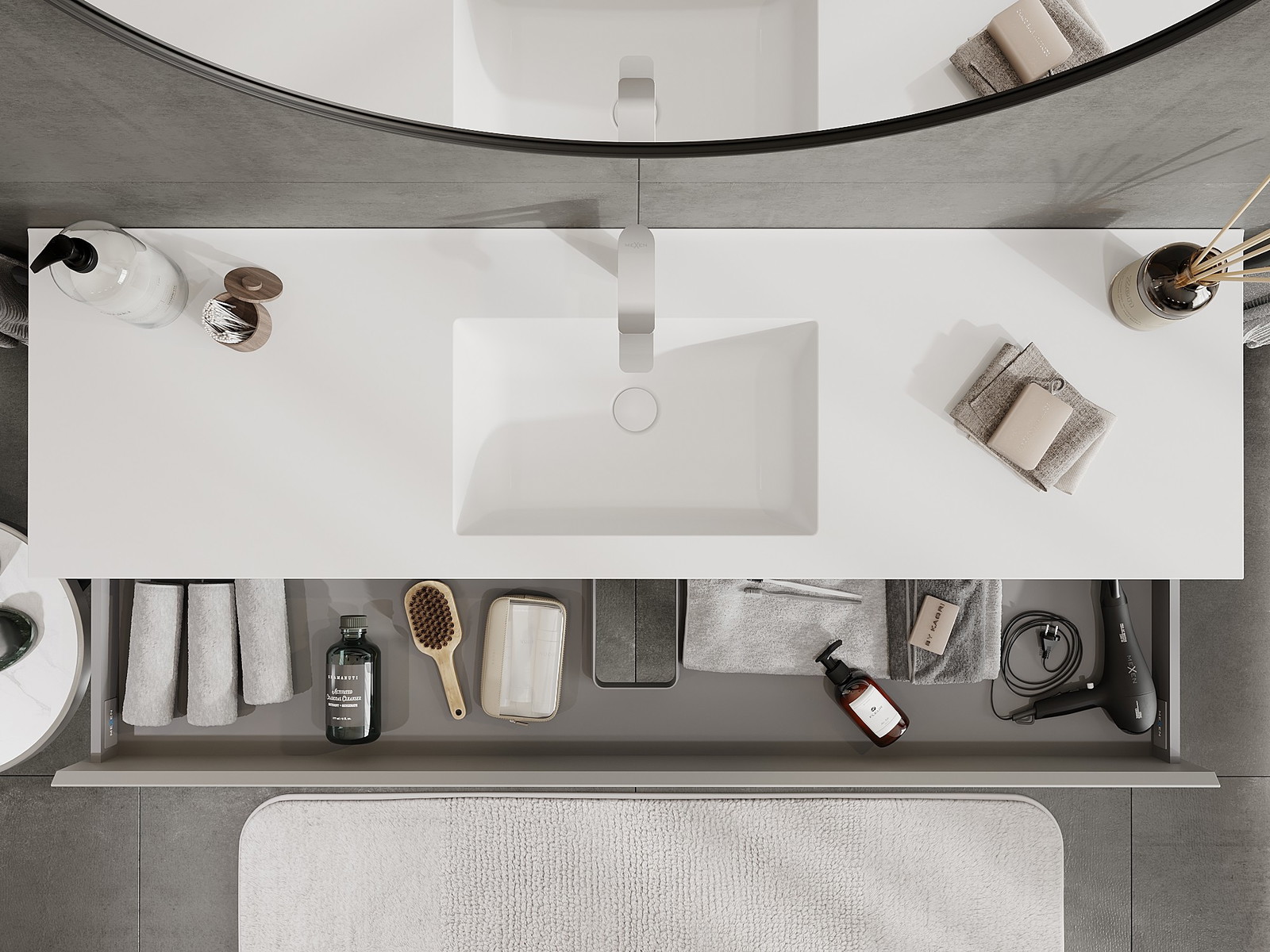 Изрезът в чекмеджето е проектиран по такъв начин, че да побере сифона, който е необходим в мивковите инсталации. Благодарение на това мебелът може да бъде монтиран напълно функционално, без да се налага отказване от пространството в чекмеджето заради инсталацията.