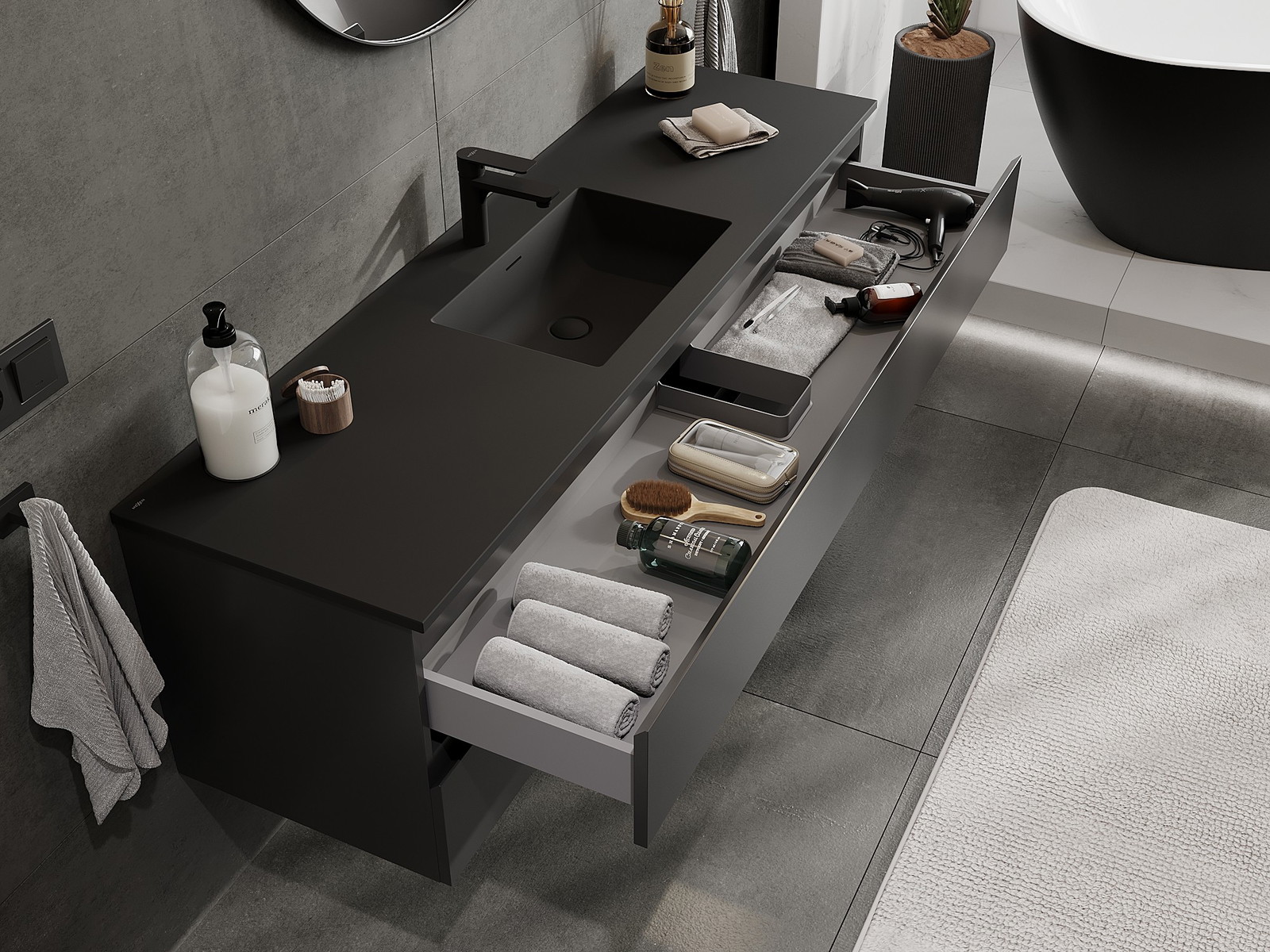Нашите модулни мебели за баня могат да се комбинират в различни цветови конфигурации, което позволява пълна персонализация. Може да се избере както външният вид, така и функциите на отделните елементи, което позволява съчетаване на мебелите със собствените стилови и функционални предпочитания.