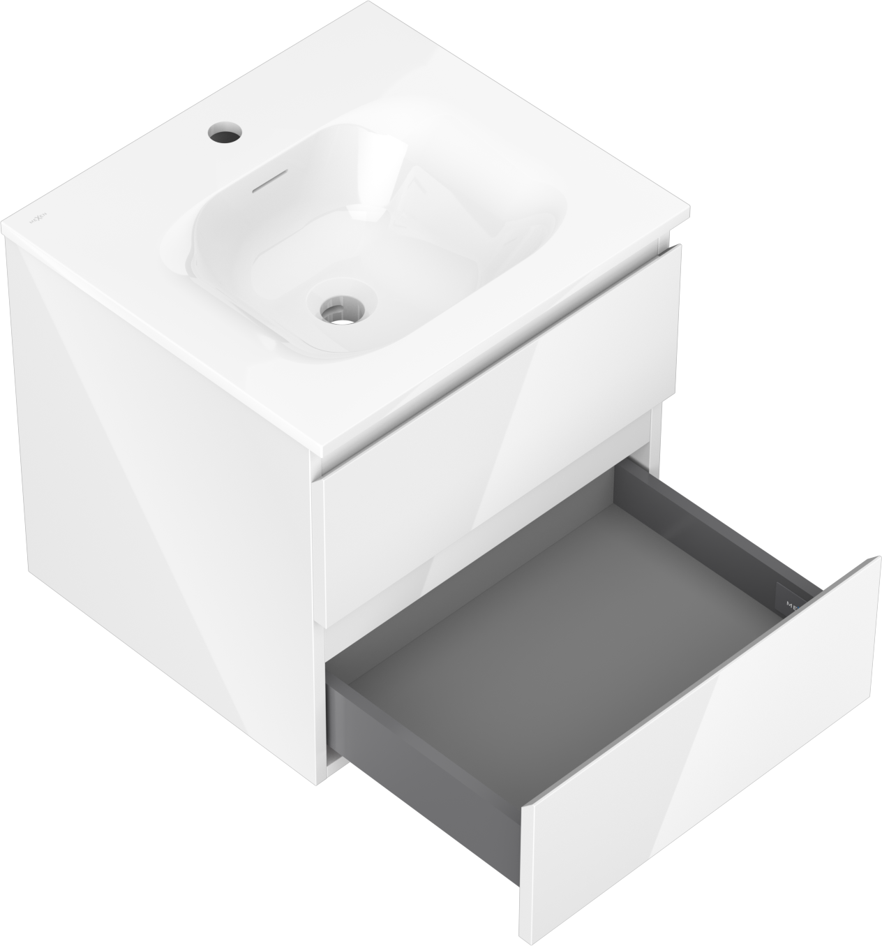 Изрезът в чекмеджето е проектиран по такъв начин, че да побере сифона, който е необходим в мивковите инсталации. Благодарение на това мебелът може да бъде монтиран напълно функционално, без да се налага отказване от пространството в чекмеджето заради инсталацията.