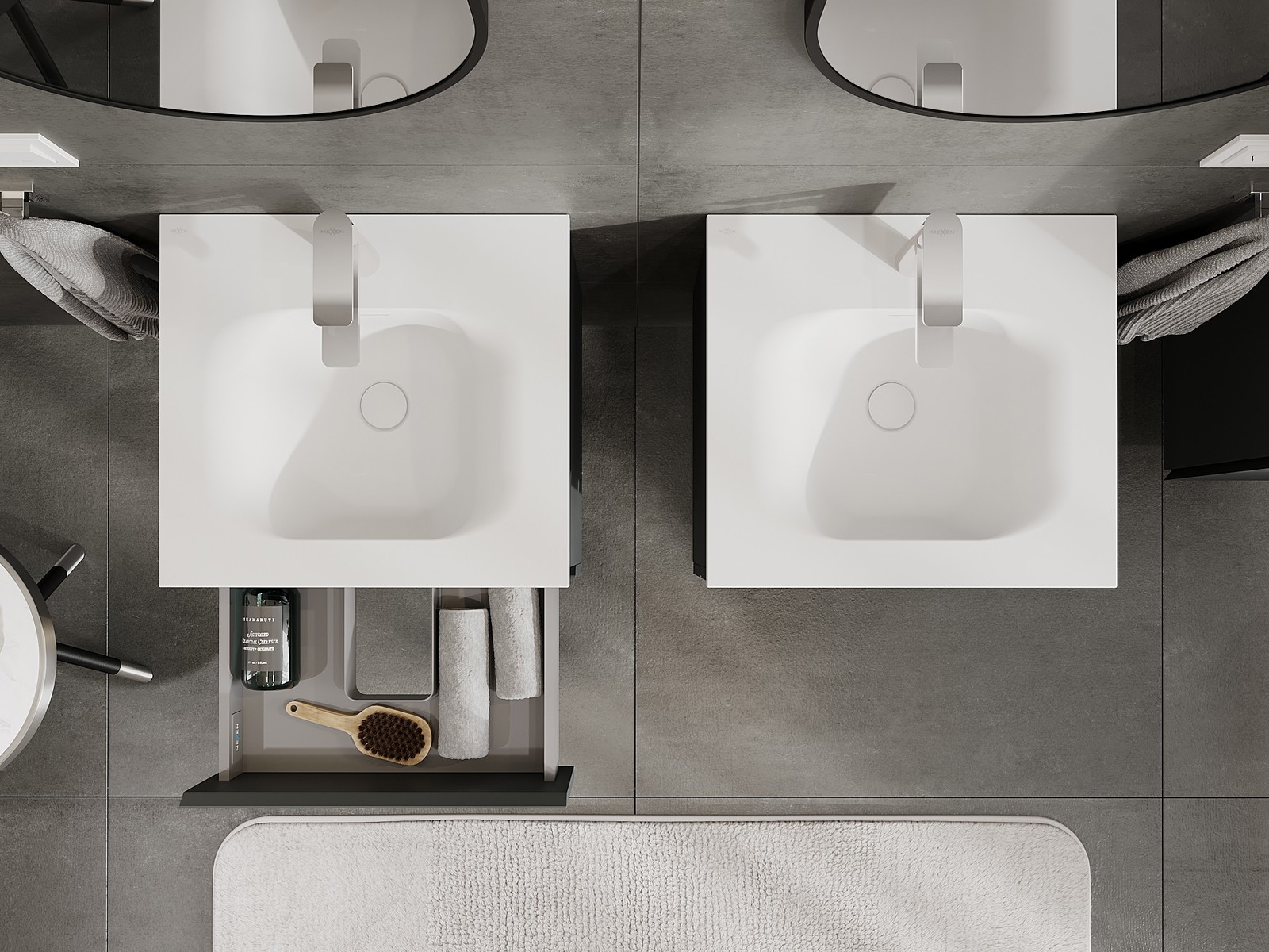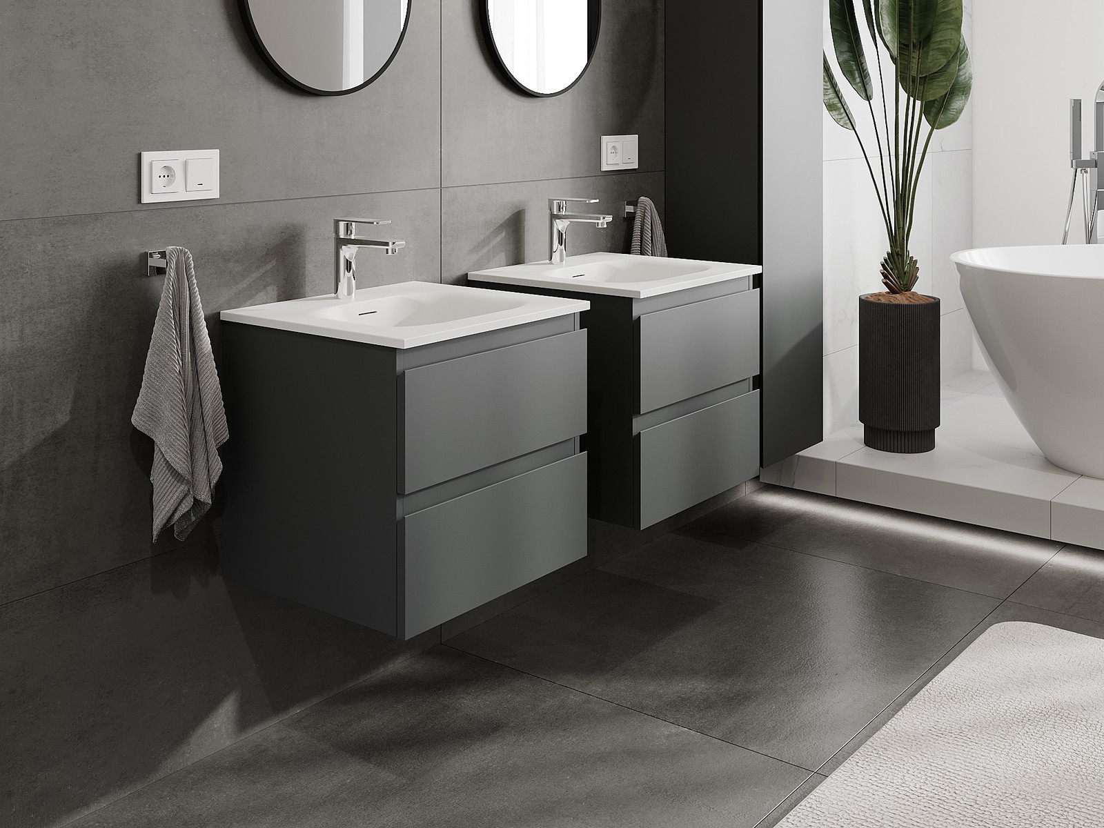 Нашите модулни мебели за баня могат да се комбинират в различни цветови конфигурации, което позволява пълна персонализация. Може да се избере както външният вид, така и функциите на отделните елементи, което позволява съчетаване на мебелите със собствените стилови и функционални предпочитания.