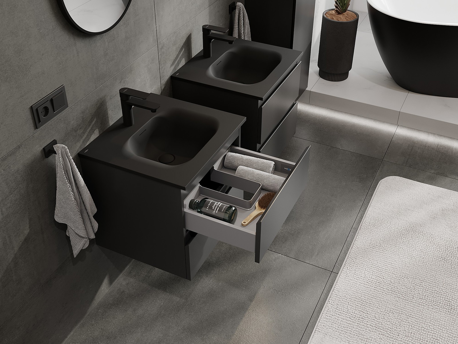 Нашите модулни мебели за баня могат да се комбинират в различни цветови конфигурации, което позволява пълна персонализация. Може да се избере както външният вид, така и функциите на отделните елементи, което позволява съчетаване на мебелите със собствените стилови и функционални предпочитания.