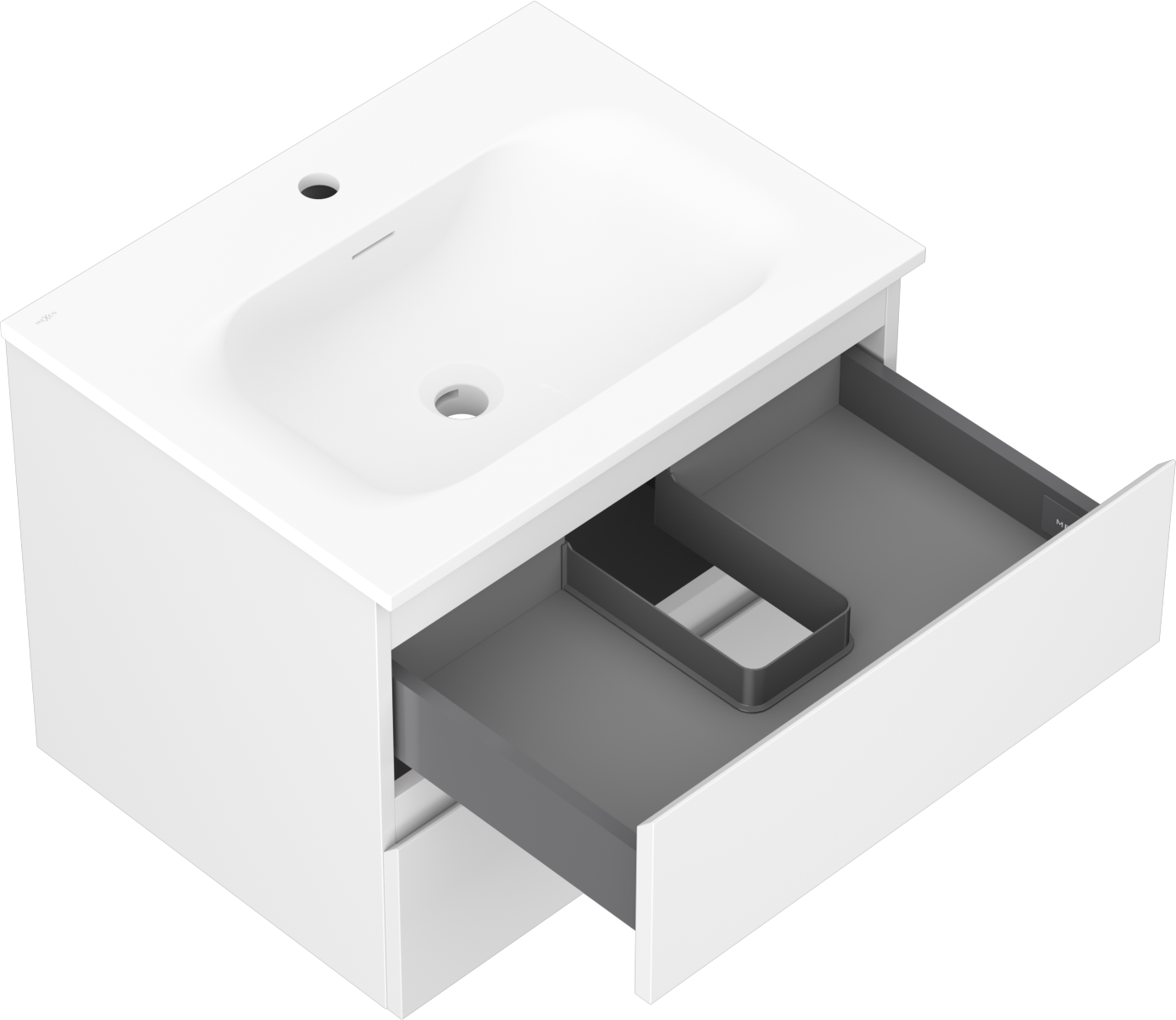 Изрезът в чекмеджето е проектиран по такъв начин, че да побере сифона, който е необходим в мивковите инсталации. Благодарение на това мебелът може да бъде монтиран напълно функционално, без да се налага отказване от пространството в чекмеджето заради инсталацията.