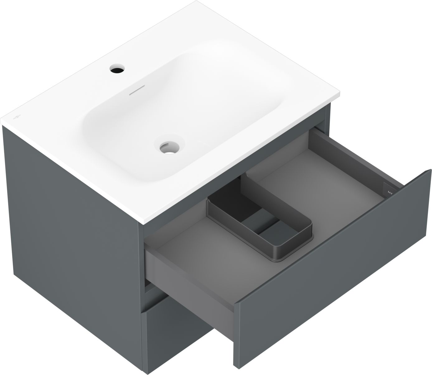 Изрезът в чекмеджето е проектиран по такъв начин, че да побере сифона, който е необходим в мивковите инсталации. Благодарение на това мебелът може да бъде монтиран напълно функционално, без да се налага отказване от пространството в чекмеджето заради инсталацията.