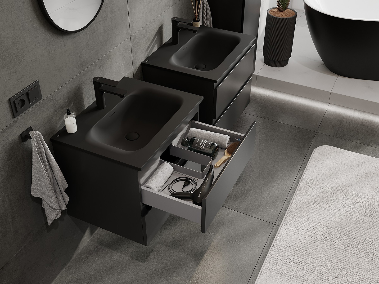 Изрезът в чекмеджето е проектиран по такъв начин, че да побере сифона, който е необходим в мивковите инсталации. Благодарение на това мебелът може да бъде монтиран напълно функционално, без да се налага отказване от пространството в чекмеджето заради инсталацията.