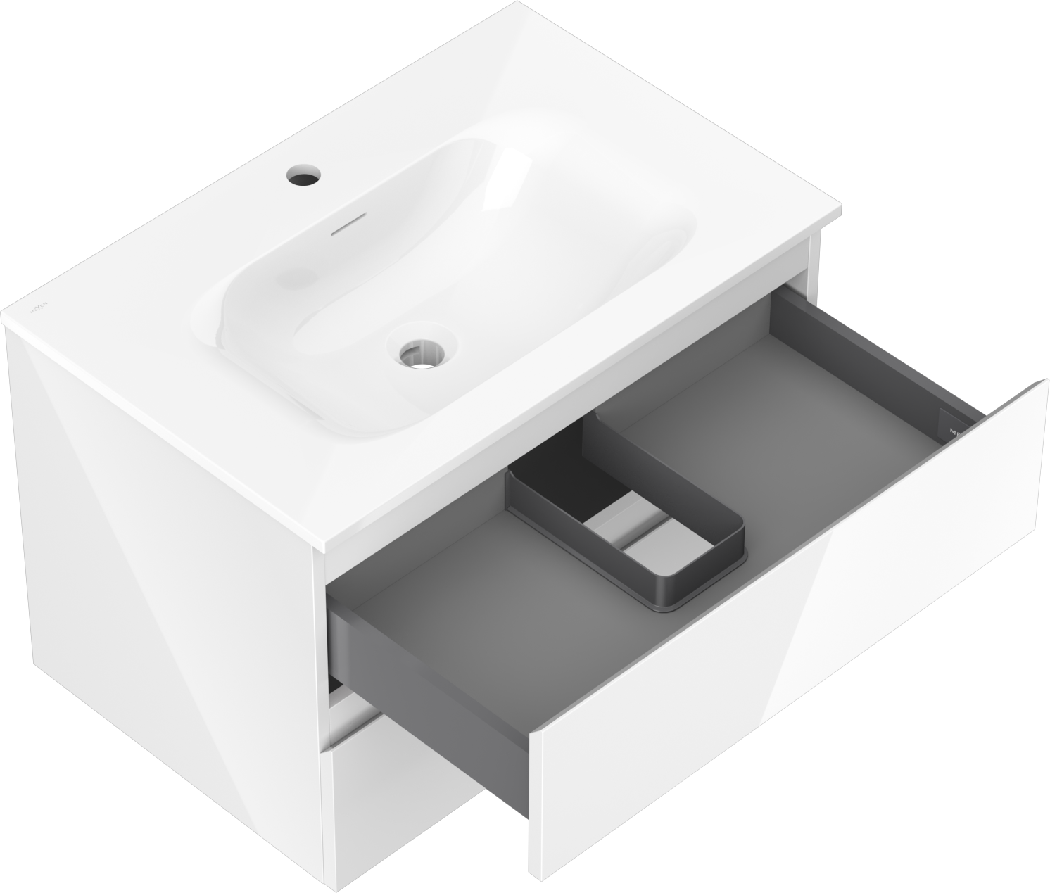 Изрезът в чекмеджето е проектиран по такъв начин, че да побере сифона, който е необходим в мивковите инсталации. Благодарение на това мебелът може да бъде монтиран напълно функционално, без да се налага отказване от пространството в чекмеджето заради инсталацията.